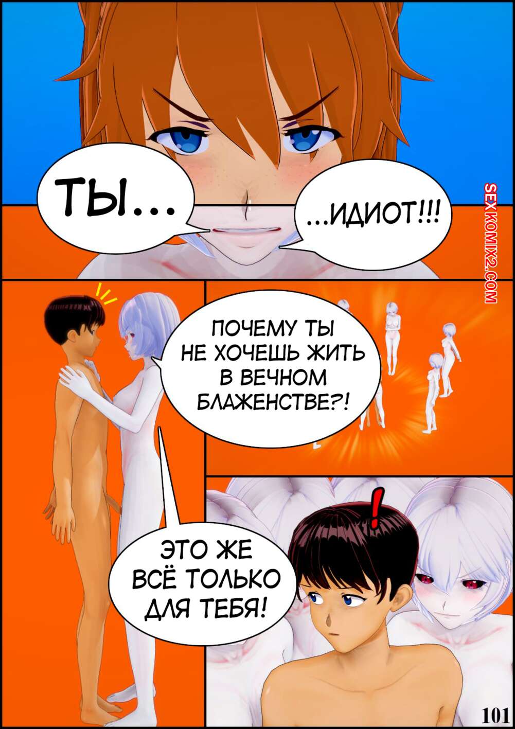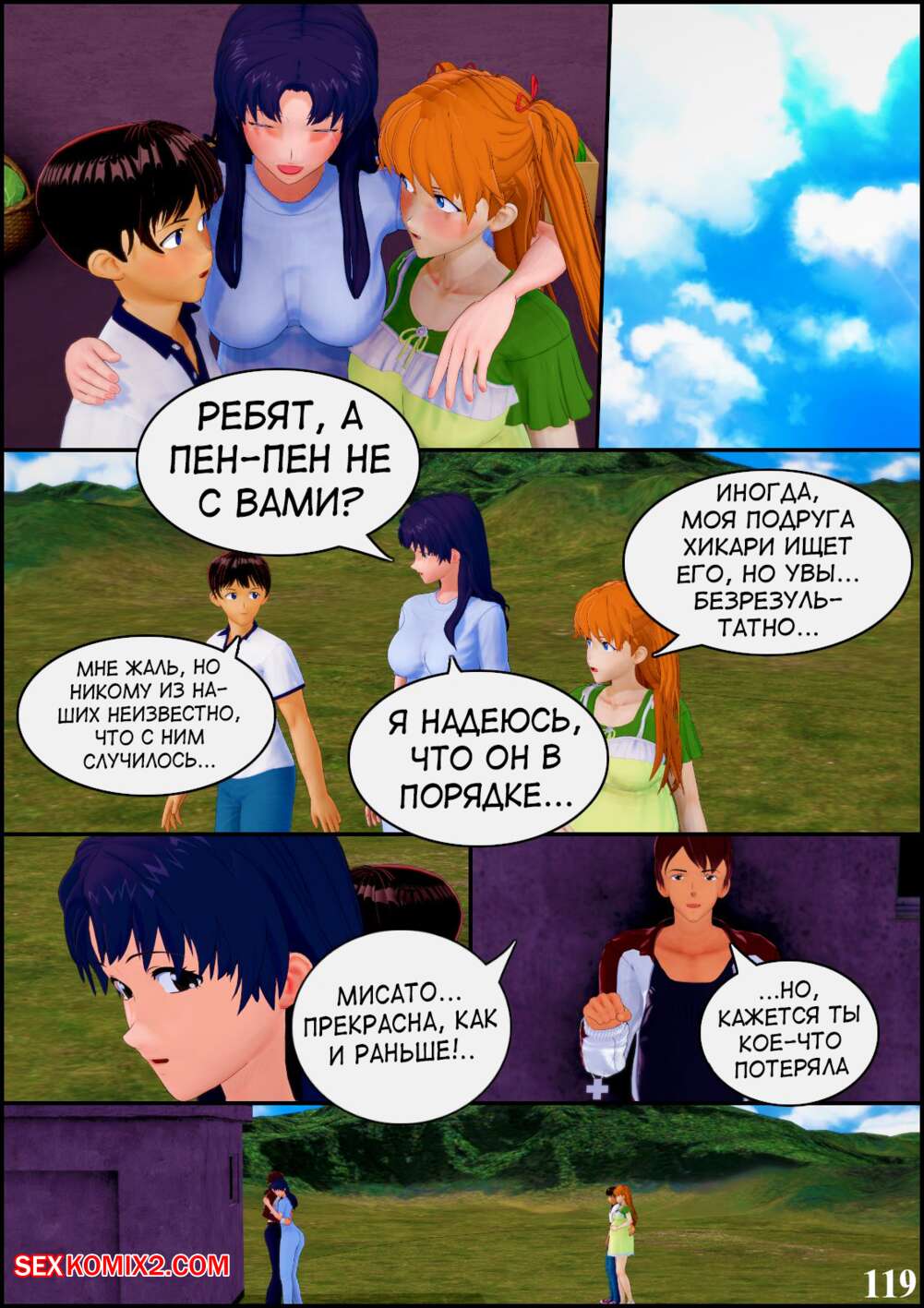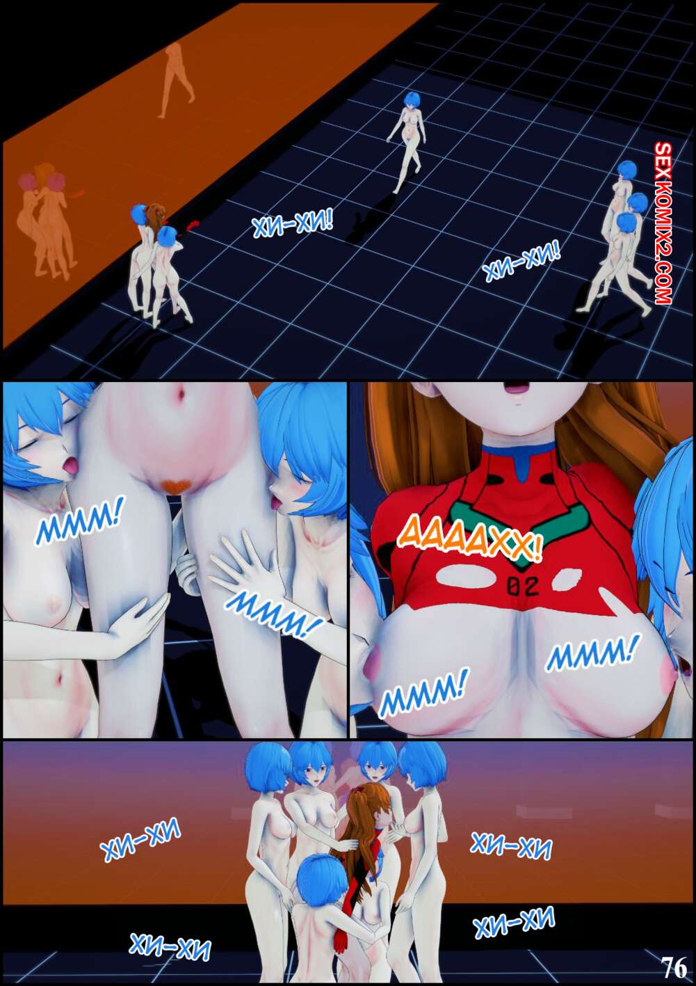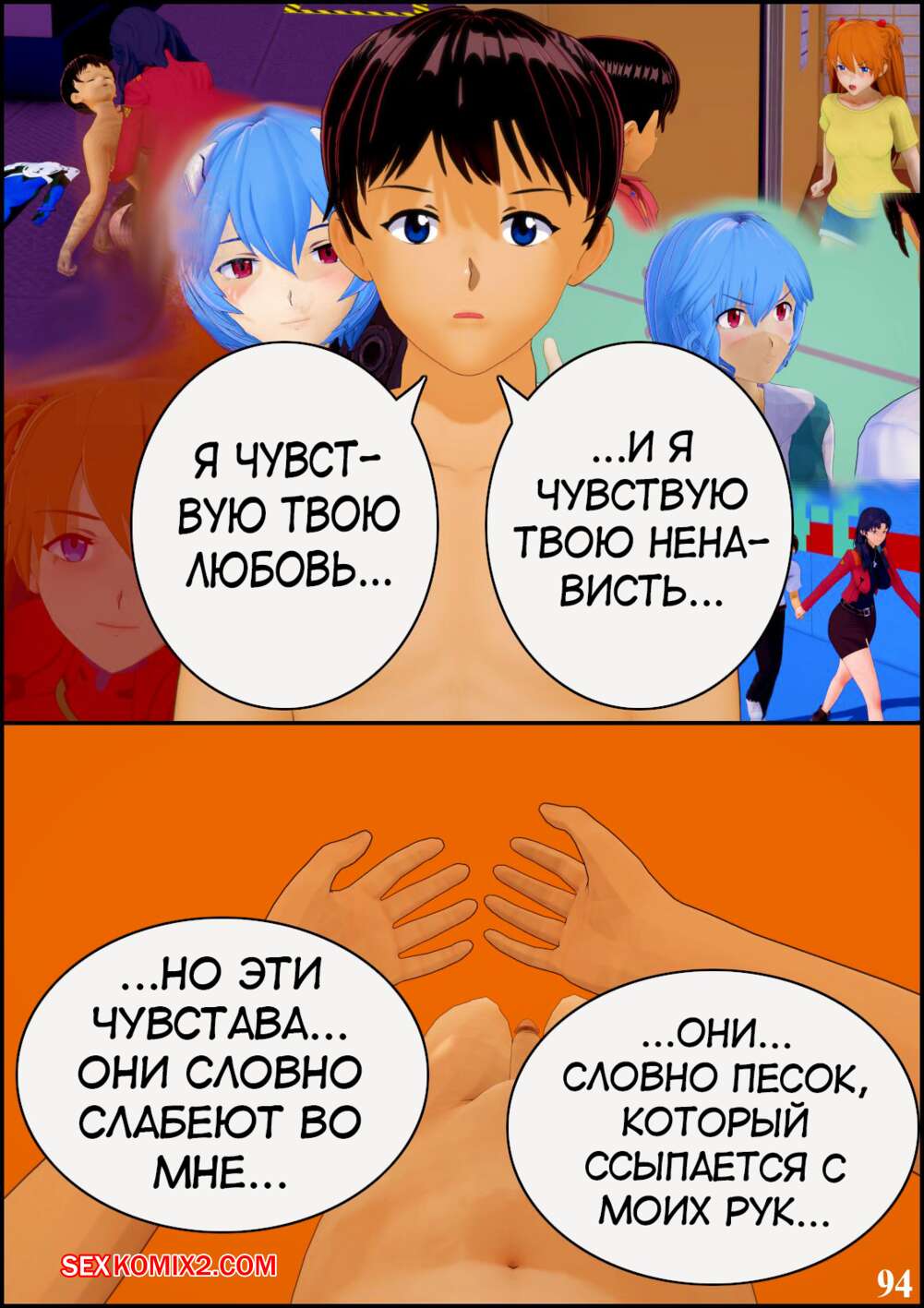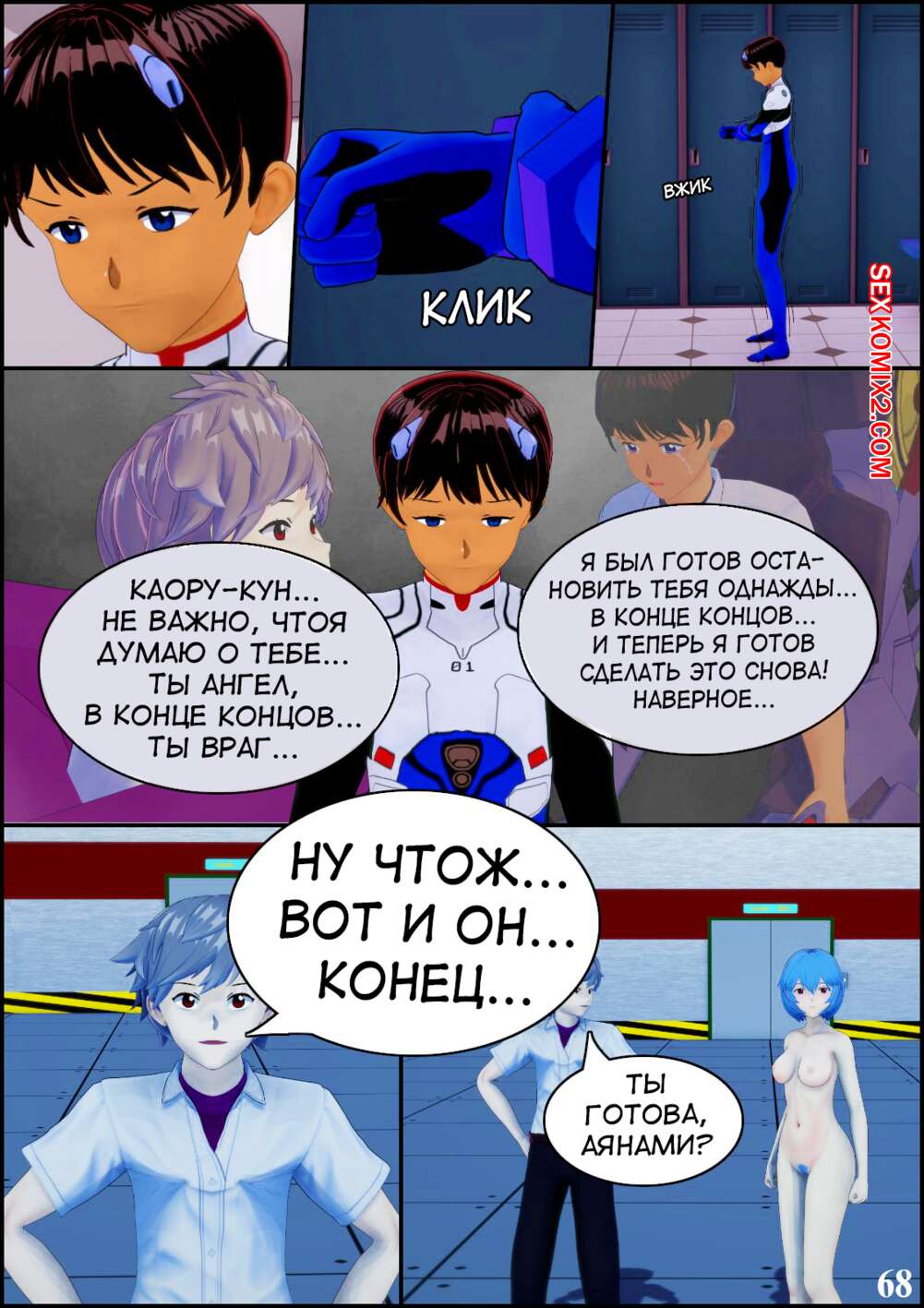 Порно комикс Neon Genesis Evangelion. Ребилд проекта спасения человечества. TheSecondChild Горячие сисястые красотки невероятно возбуждены и хотят трахаться. Они раздеваются перед своими дружками и соблазняют их своими шикарными телами, после чего дают им себя выебать.