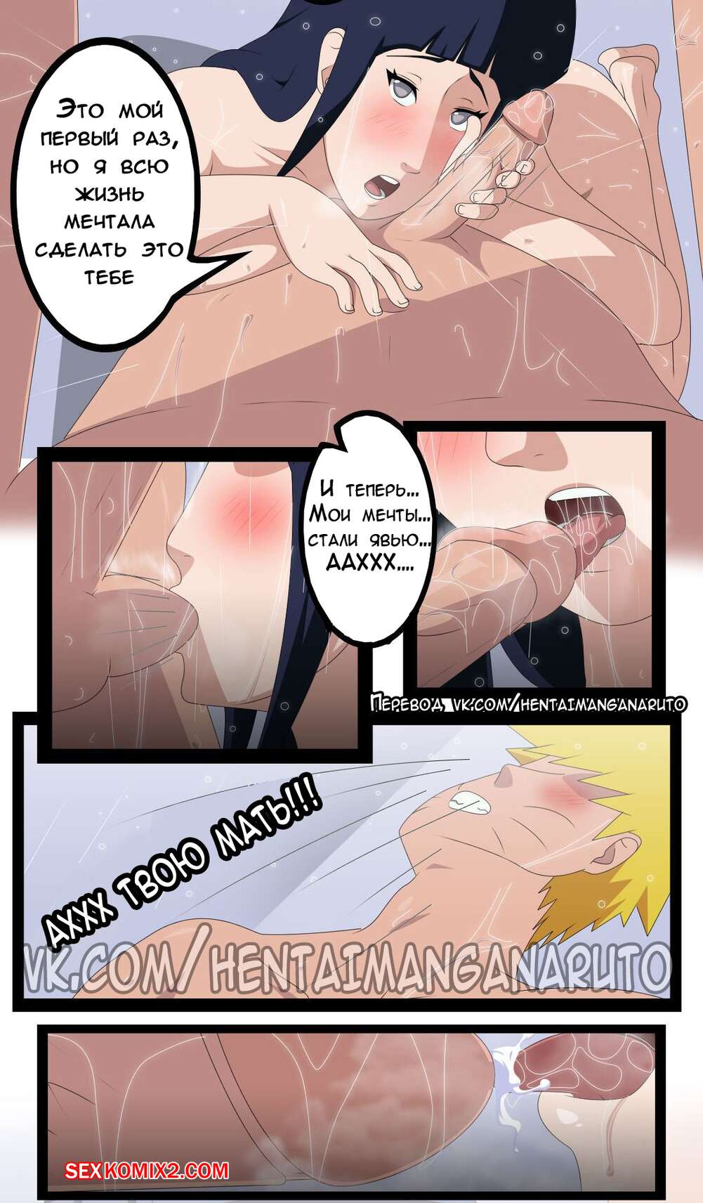 Порно комикс Наруто. Эро-ниндзя. Часть 2. Naruto EroNinja. Парень пошёл с Хинатой в душ, чтобы потереть её спинку. Девушка возбудилась от прикосновений и они перешли к жаркой ебле.