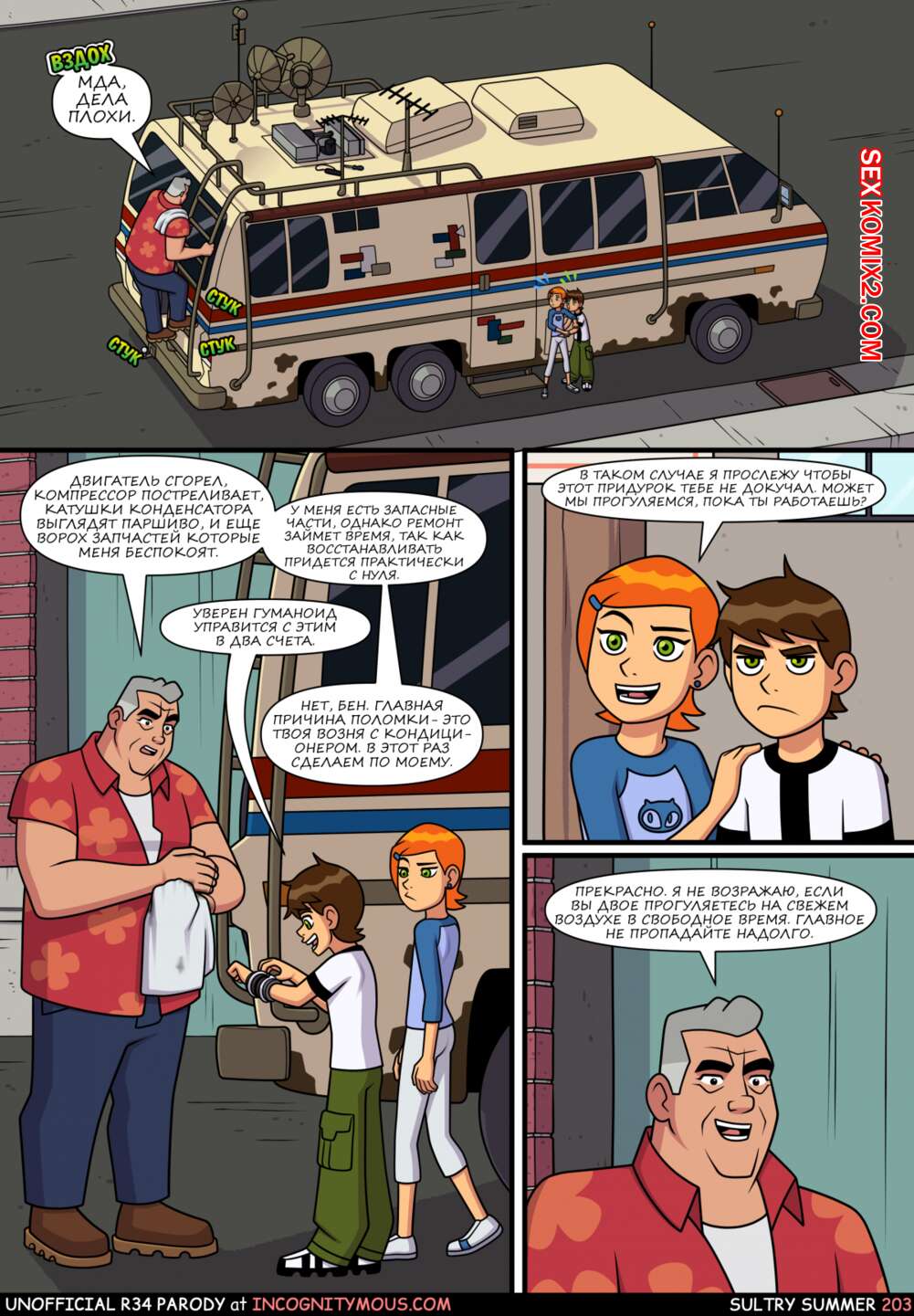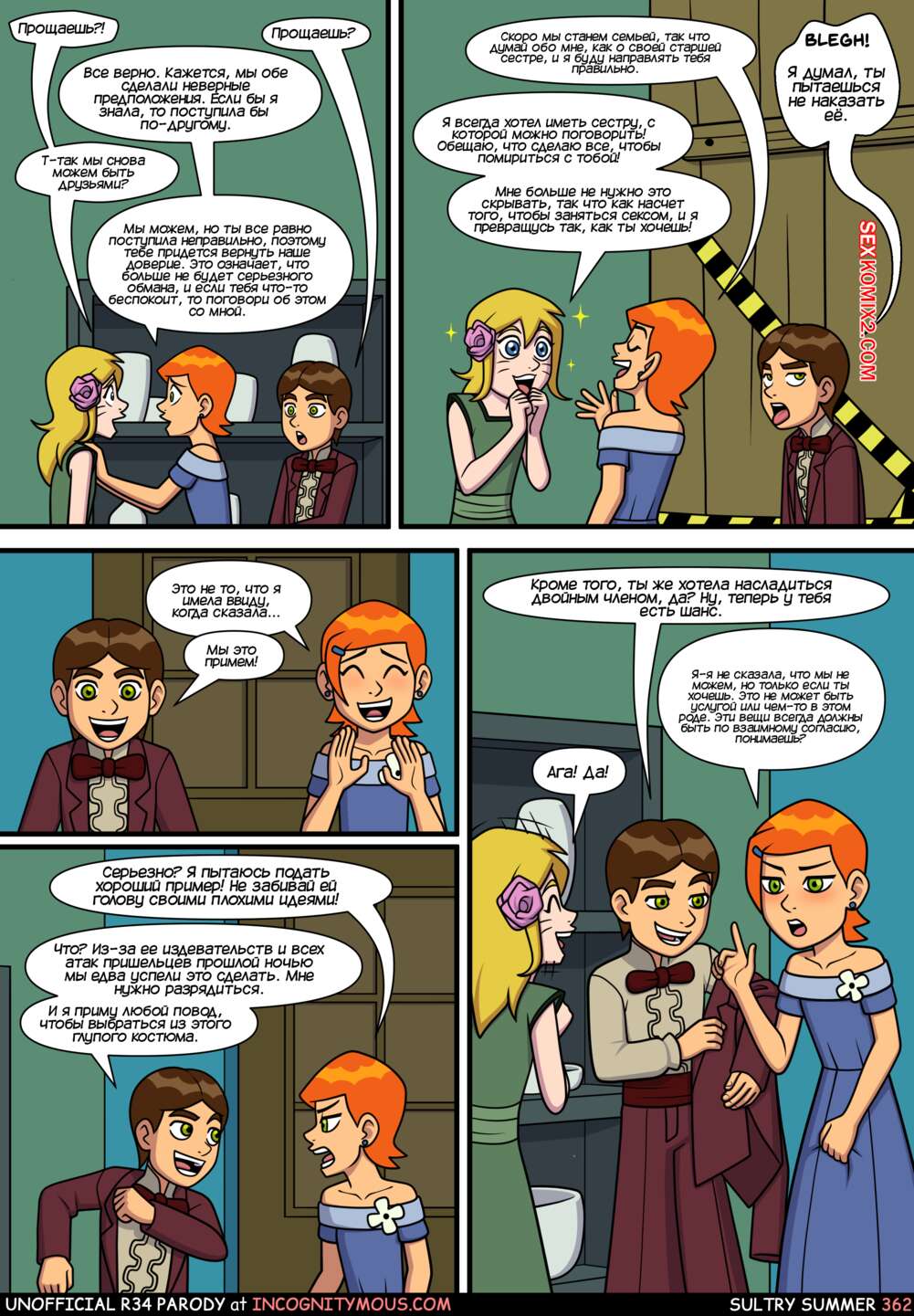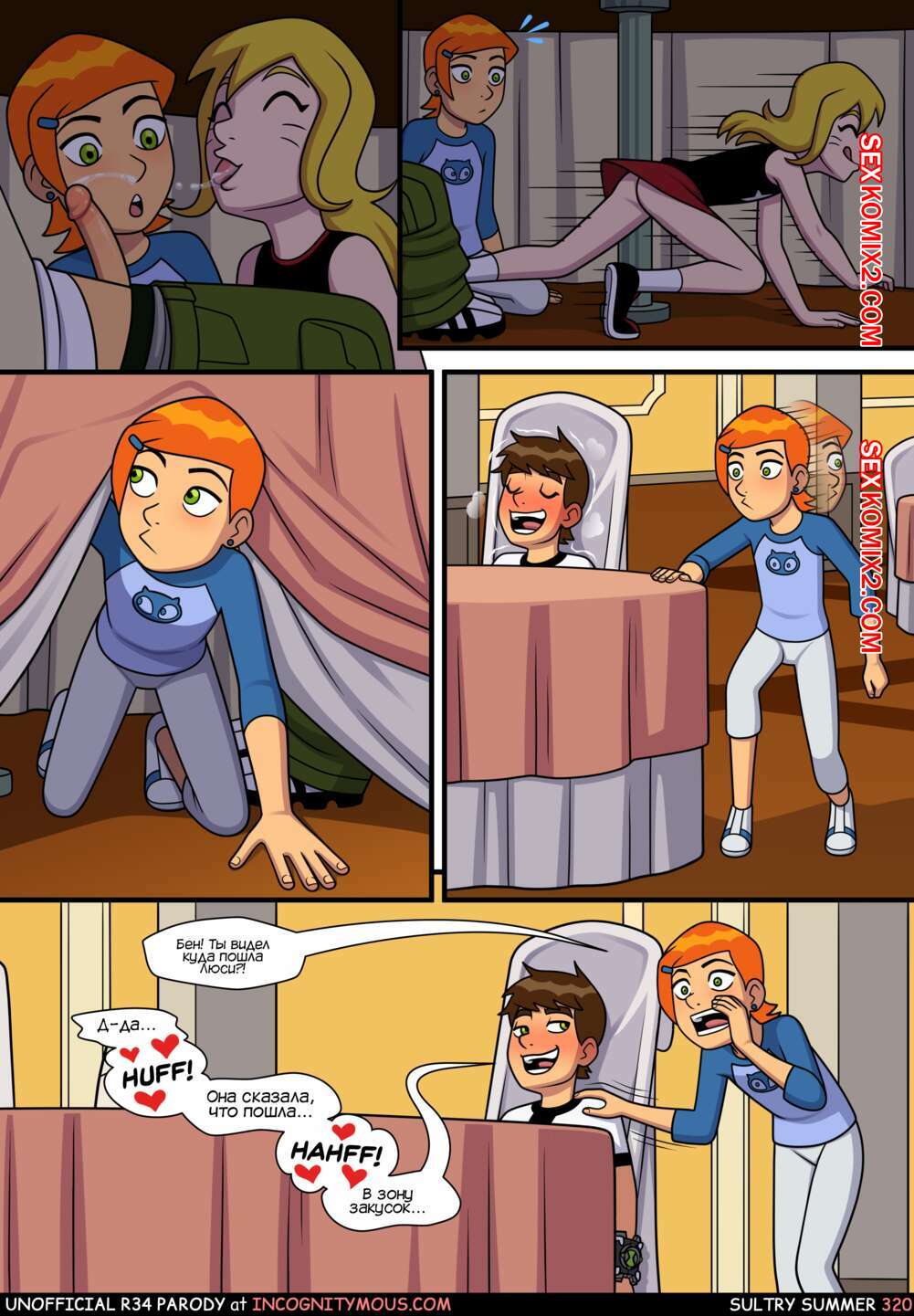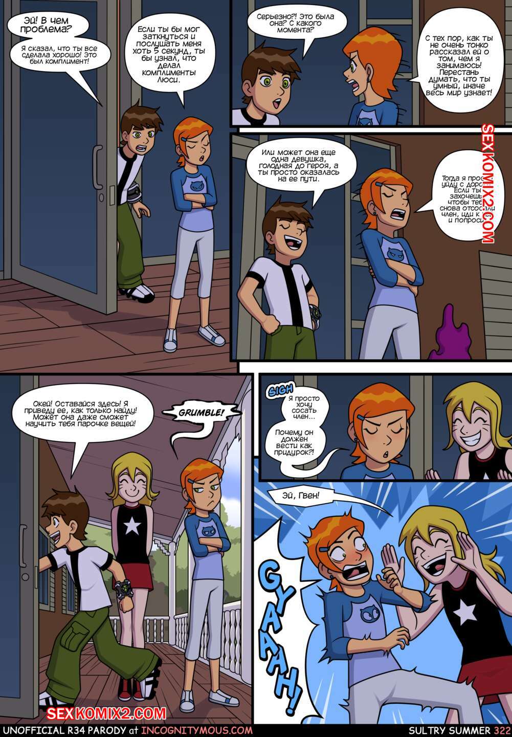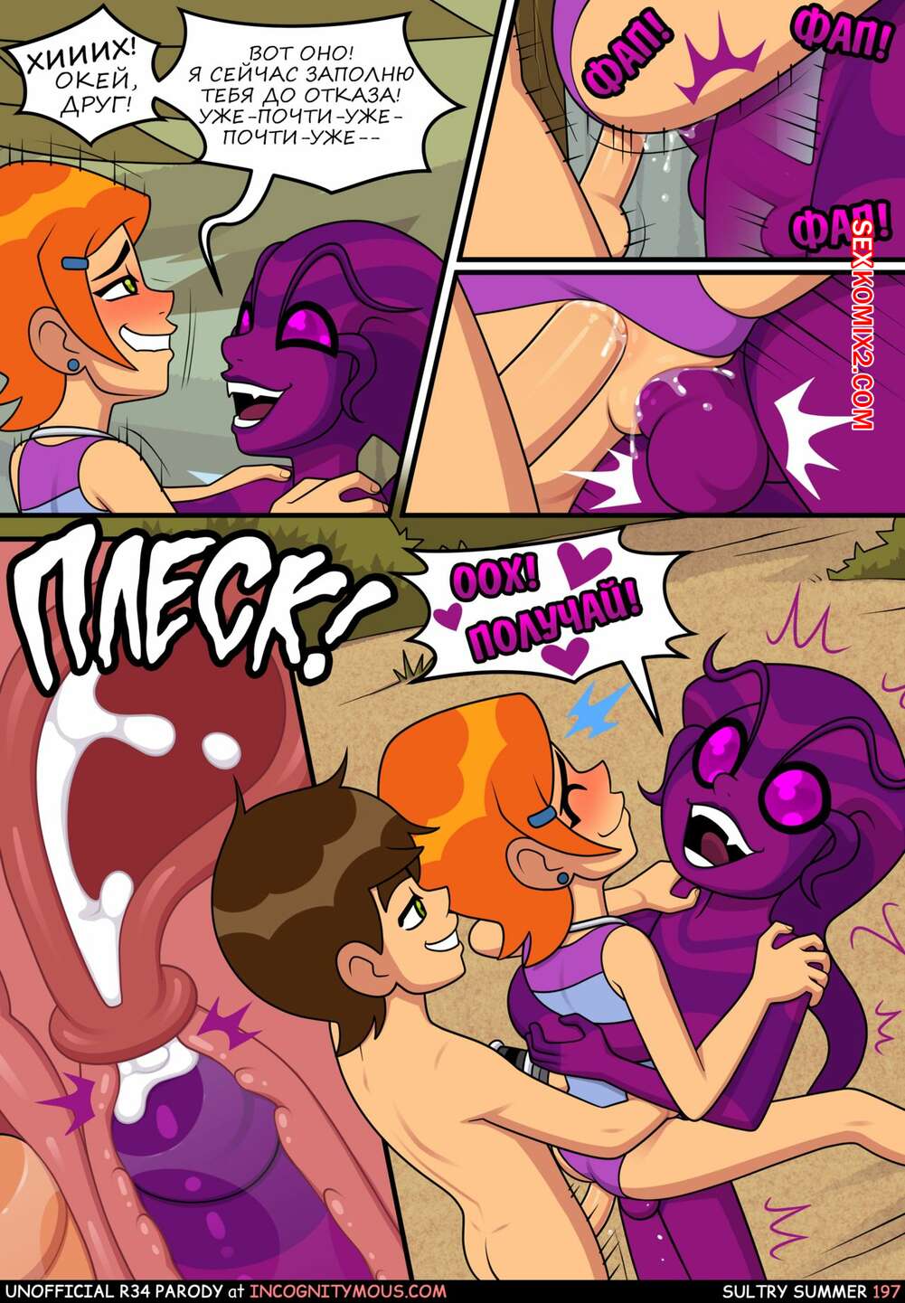 Порно комикс Бен 10. Знойное лето. Все части. Sultry summer. Ben 10. Incognitymous