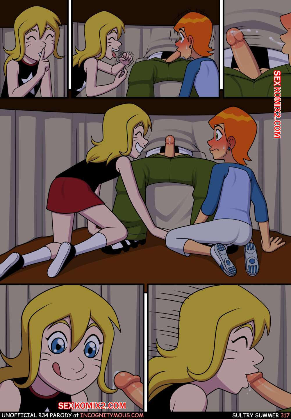 Порно комикс Бен 10. Знойное лето. Все части. Sultry summer. Ben 10. Incognitymous Бен и его горячая кузина Гвен очень любят трахаться. Они постоянно находят возможность для уединения, чтобы заняться страстной еблей и получить огромное удовольствие.