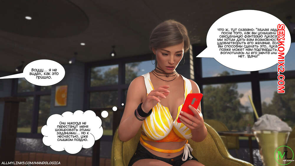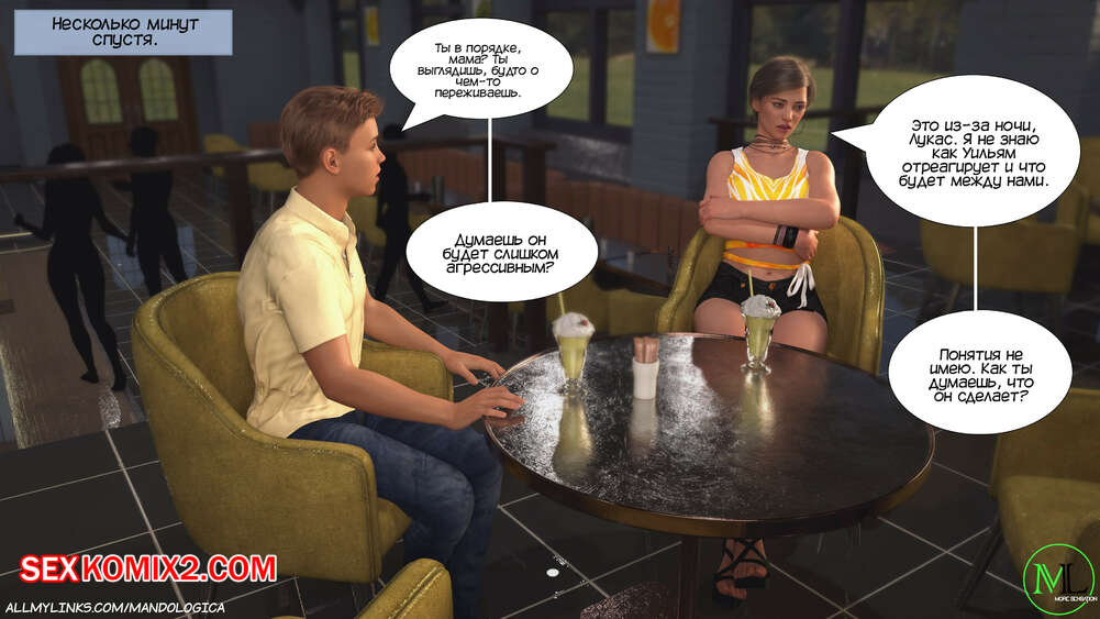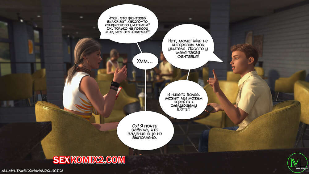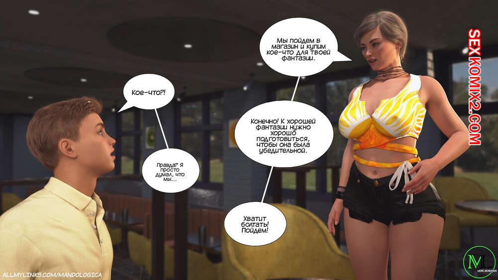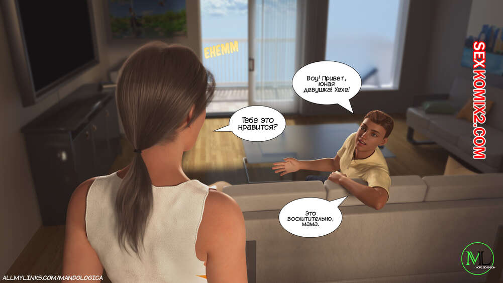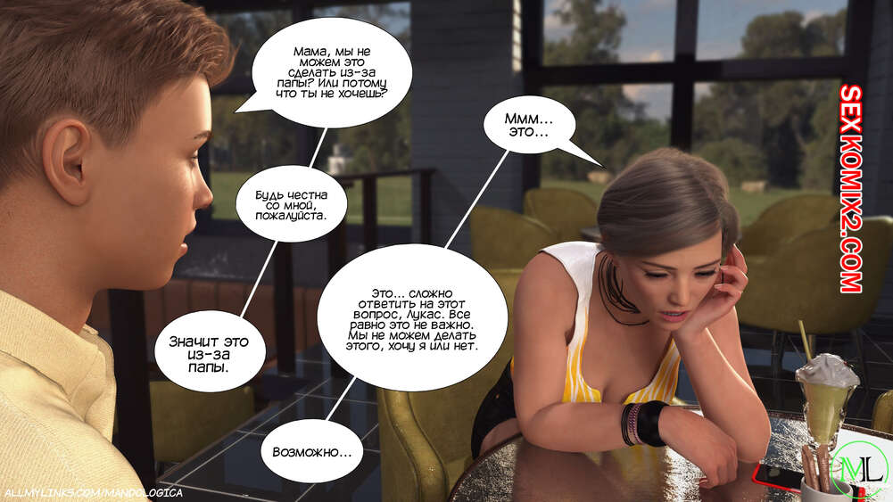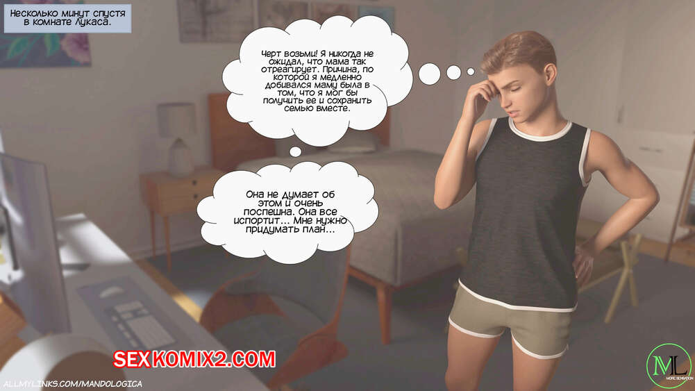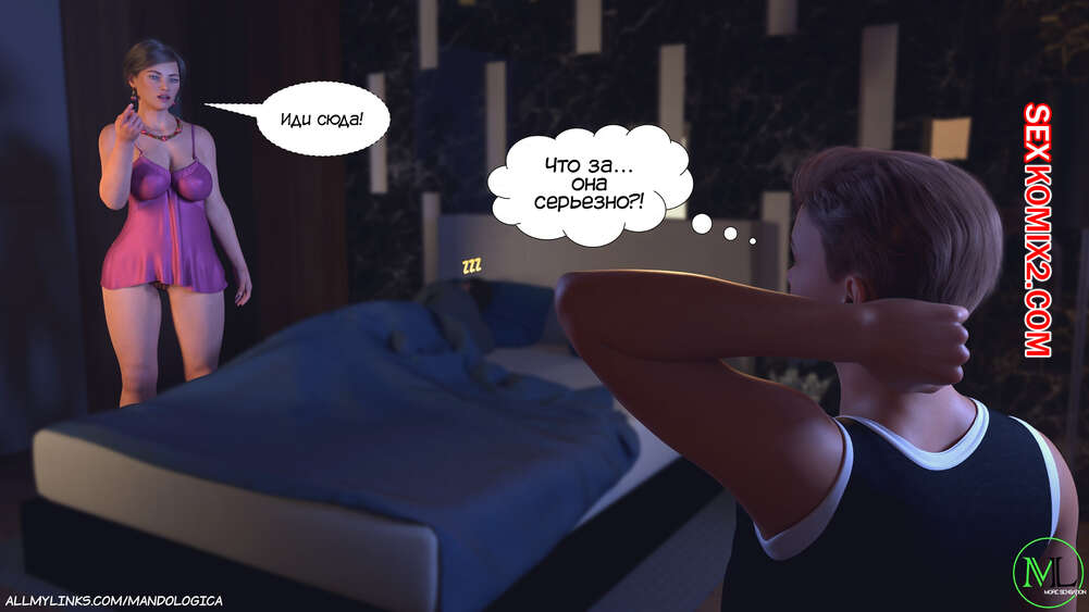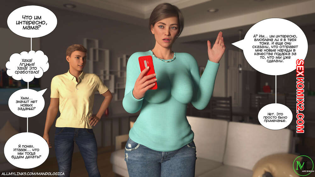 Порно комикс Разрушение границ. Часть 6. Breaking Boundaries. MandoLogica Адрианна очень возбужден и хочет отведать на вкус сперму своего сына. Милфа уложила Лукаса на кровать и стала тереться своей пизденкой о его член, от чего парень быстро кончил.