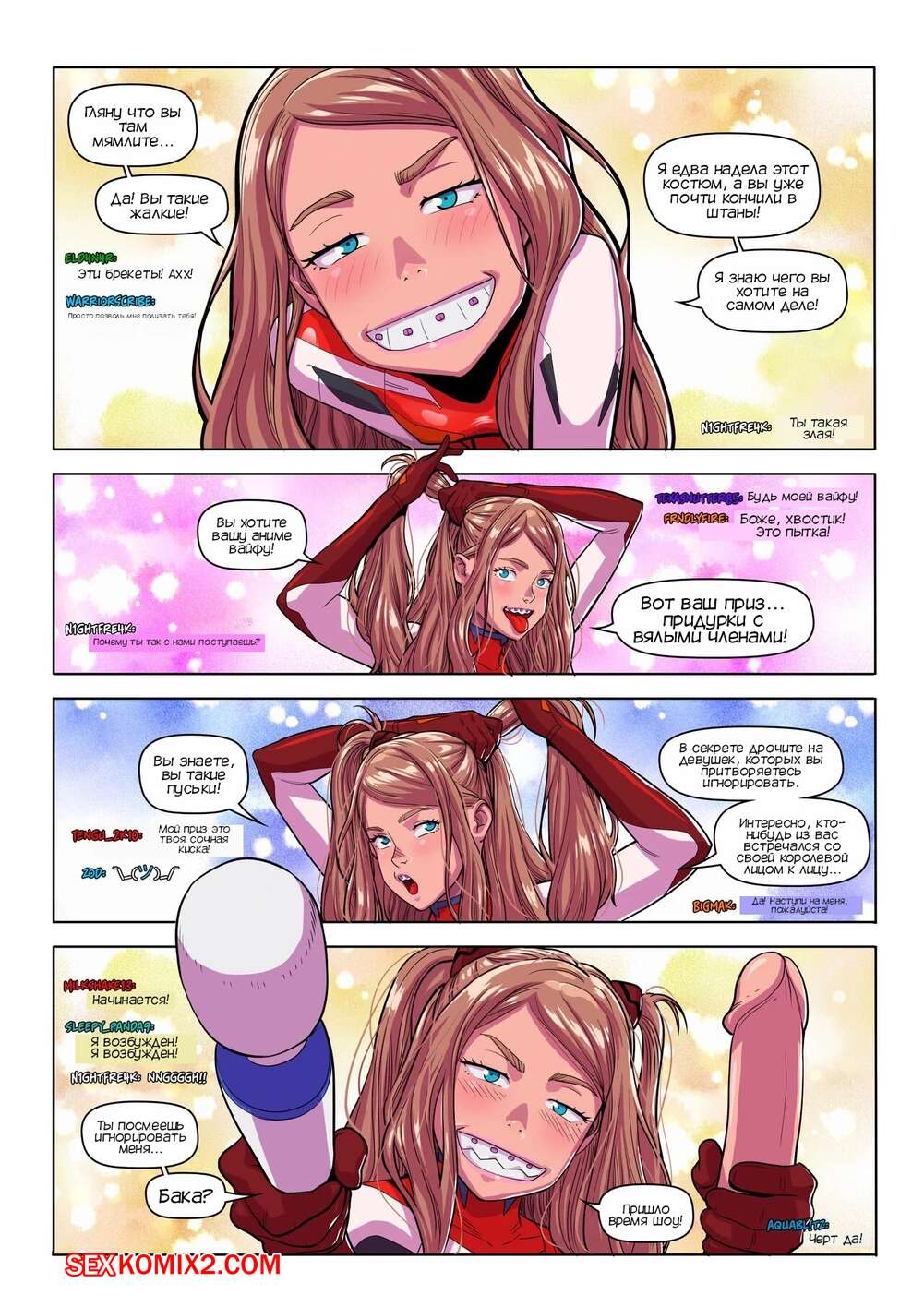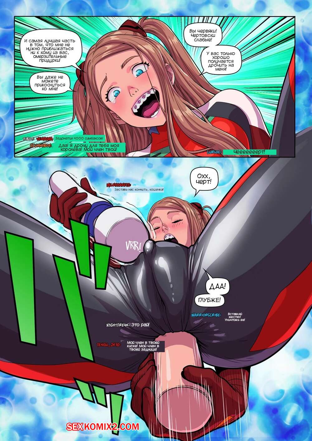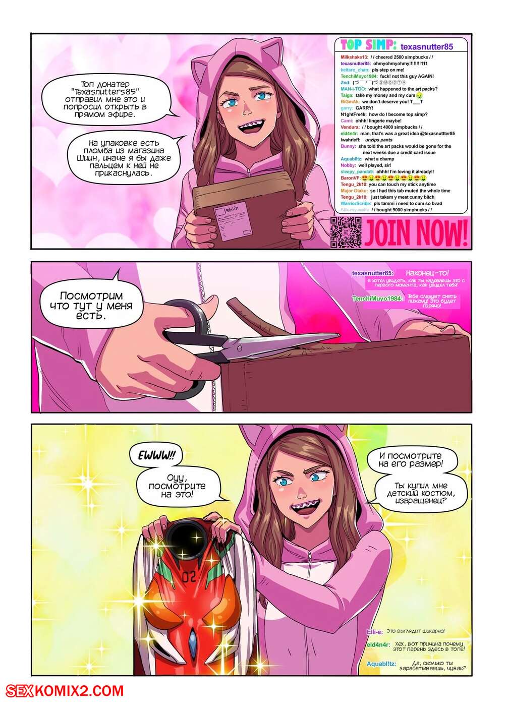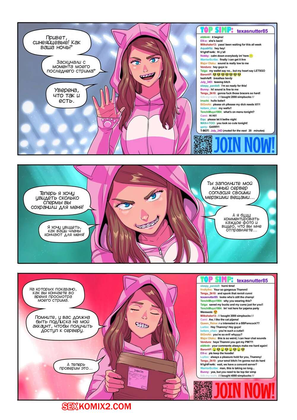 Порно комикс Шоу на камеру супер Тэмми. Super Tammy Cam Show. Tekuho. Сексуальная брюнетка запустила прямой эфир, на который пришли много ее фанатов. Красотка получила в посылку секси костюм и примерила его, после чего стала ласкать свою пизденку и трахать задницу.