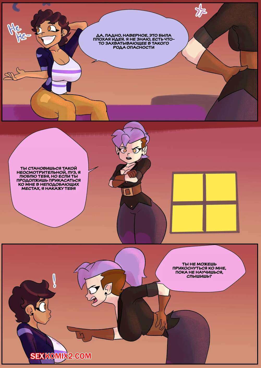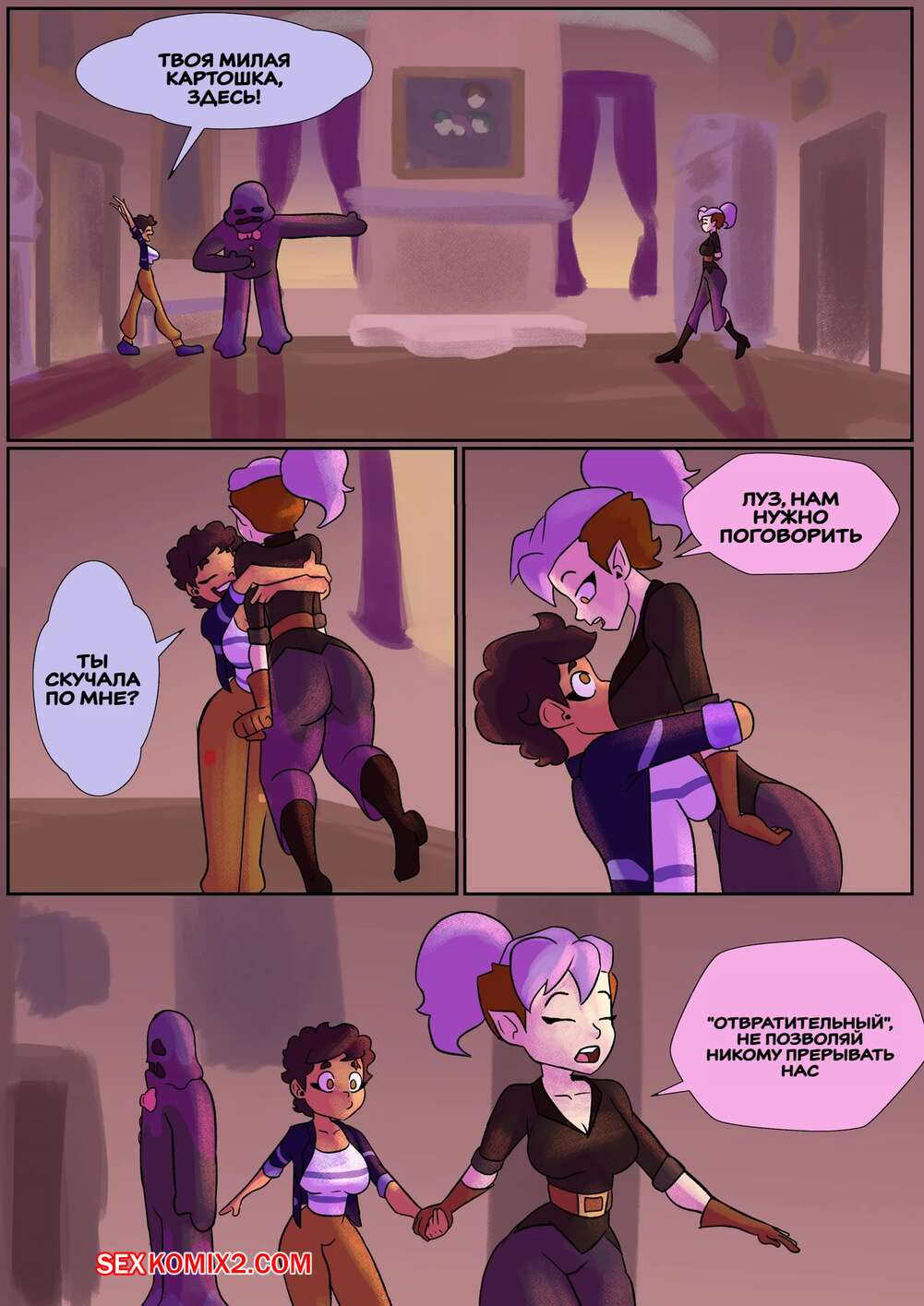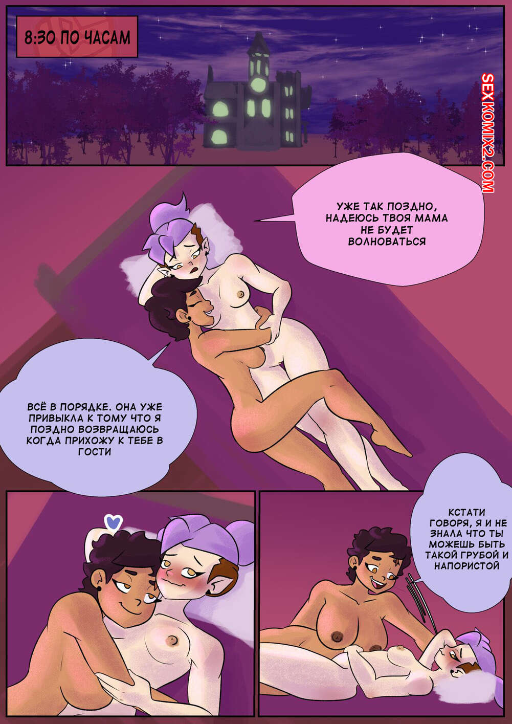 Порно комикс Дом совы. Совиная любовь. Owl Love. EvilRacoon. Горячие подруги были очень возбуждены и хотели трахаться. Они отправились в спальню, где стали страстно целоваться, после чего разделись, чтобы заняться лесбийской еблей.