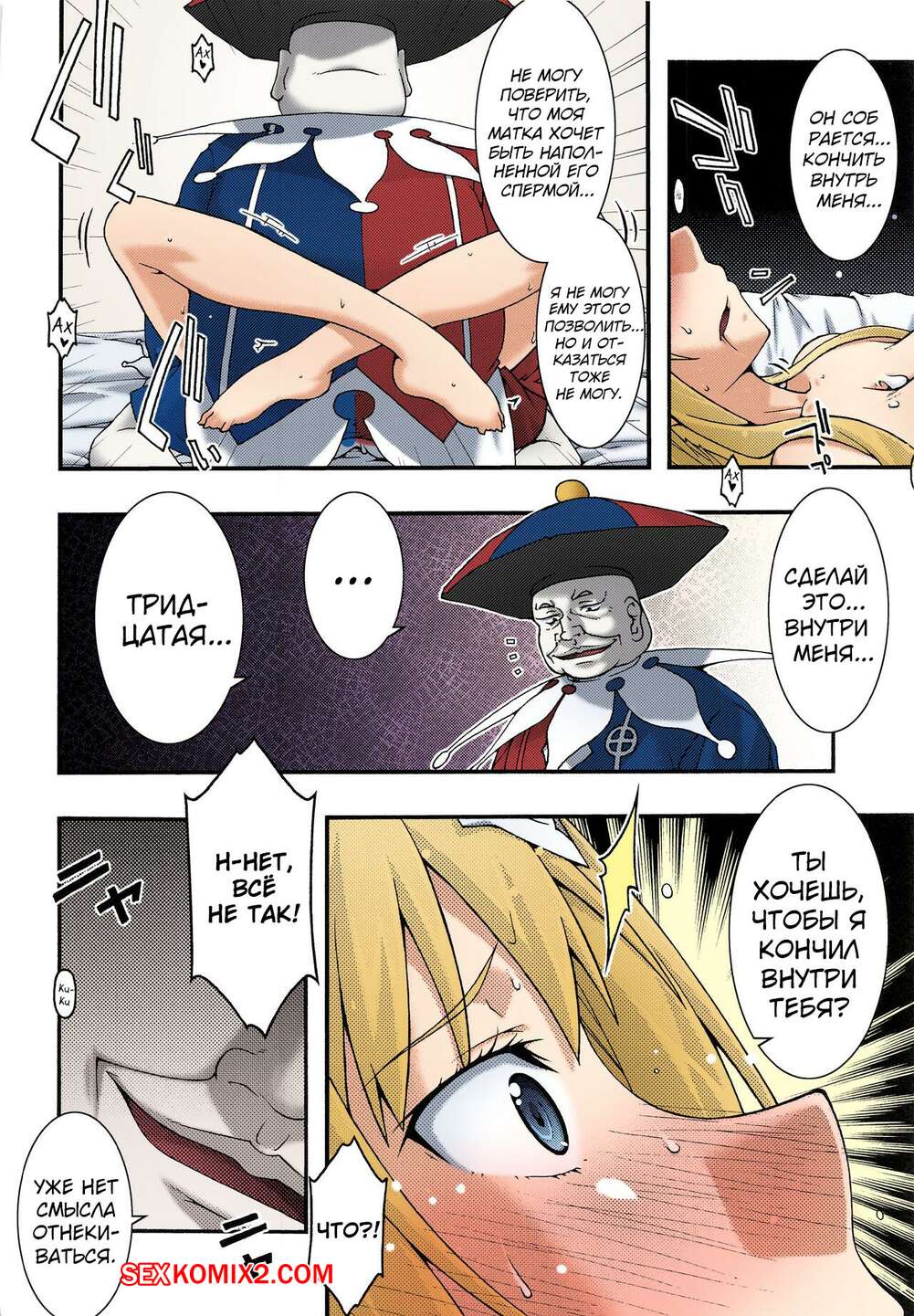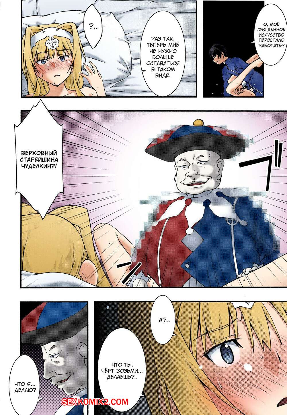 Порно комикс Sword Art Online. Падшая Алиса. Sandglass Парень шут был очень возбужден и решил повеселиться с сексуальной блондинкой. Он раздел ее и дал красотке отсосать свой большой хуй, после чего хорошенько ее выебал.