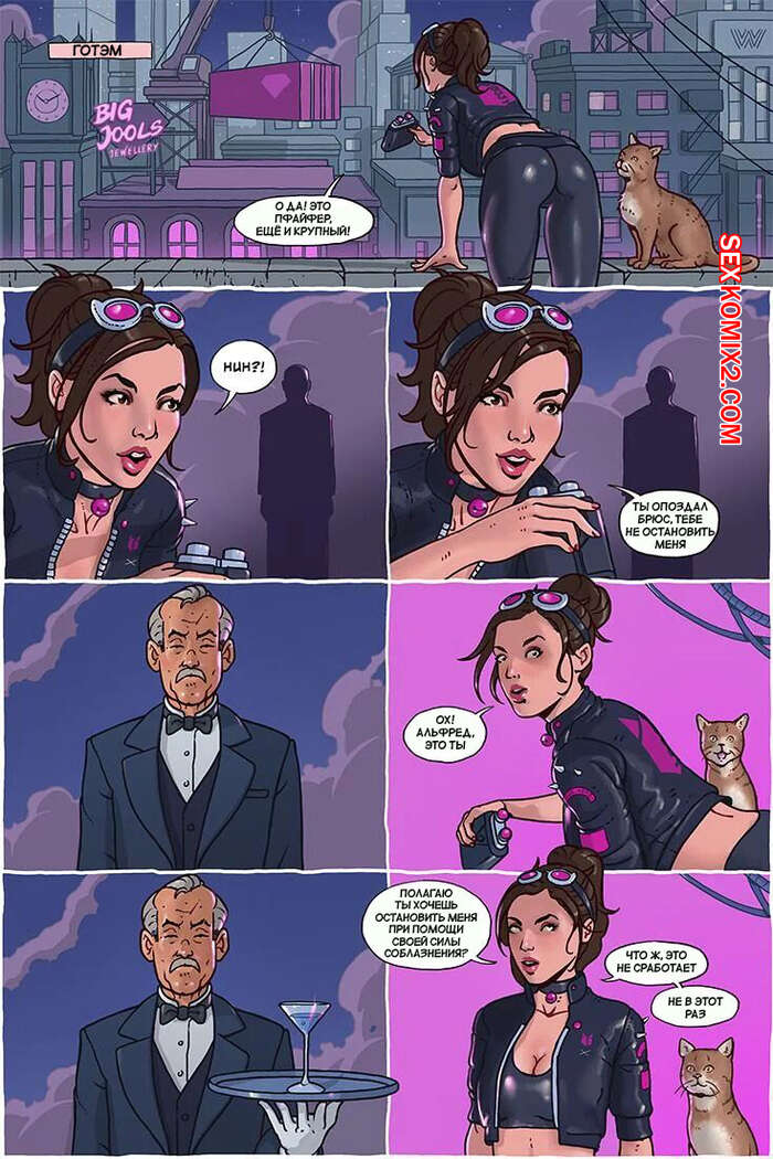 Порно комикс Бэтмен. Альфред лохматит DCU. Alfred Shags the DCU Сексуальная брюнетка Женщина кошка планировала ограбление на крыше здания. Внезапно для нее рядом с девушкой оказался Альфред и красотка стала снимать свою одежду.