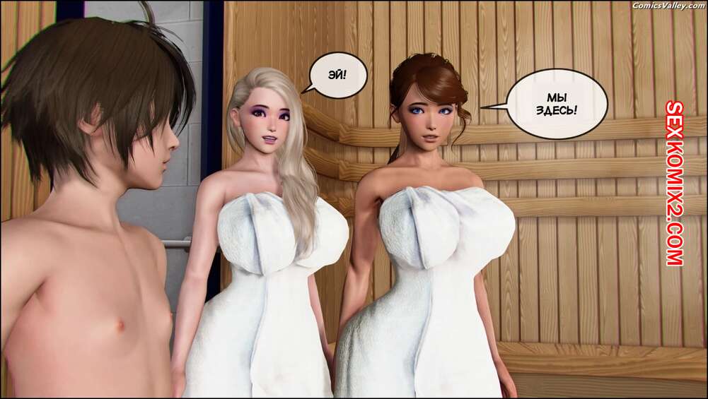 Порно комикс Тяжелая жизнь Тимми. Часть 10. Timmys Hard Life. Pure Pervert Тимми отправился в сауну с двумя сексуальными девушками. Вскоре они скинули с себя полотенца и возбудили парня своими шикарными телами, после чего стали его соблазнять, демонстрируя парню свои дырочки.