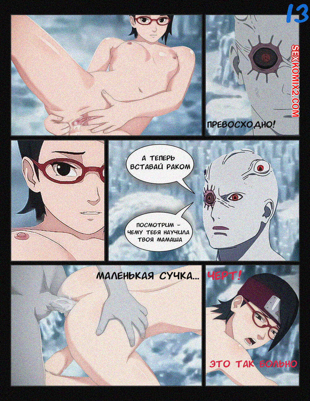 Порно комикс Наруто. Хроника Сарады. The Chronicle of Sarada. KristoLin Пейн поручает Конану особую миссию, суть которой удовлетворить каждого члена Акацки в награду за поимку хвостатых зверей. Сакура попадает в плен к Шину Учихе, который принуждает ее к сексу под угрозой уничтожения всех клонов, но на помощь приходит Сарада, которая не подозревает, что также попадет в ловушку.