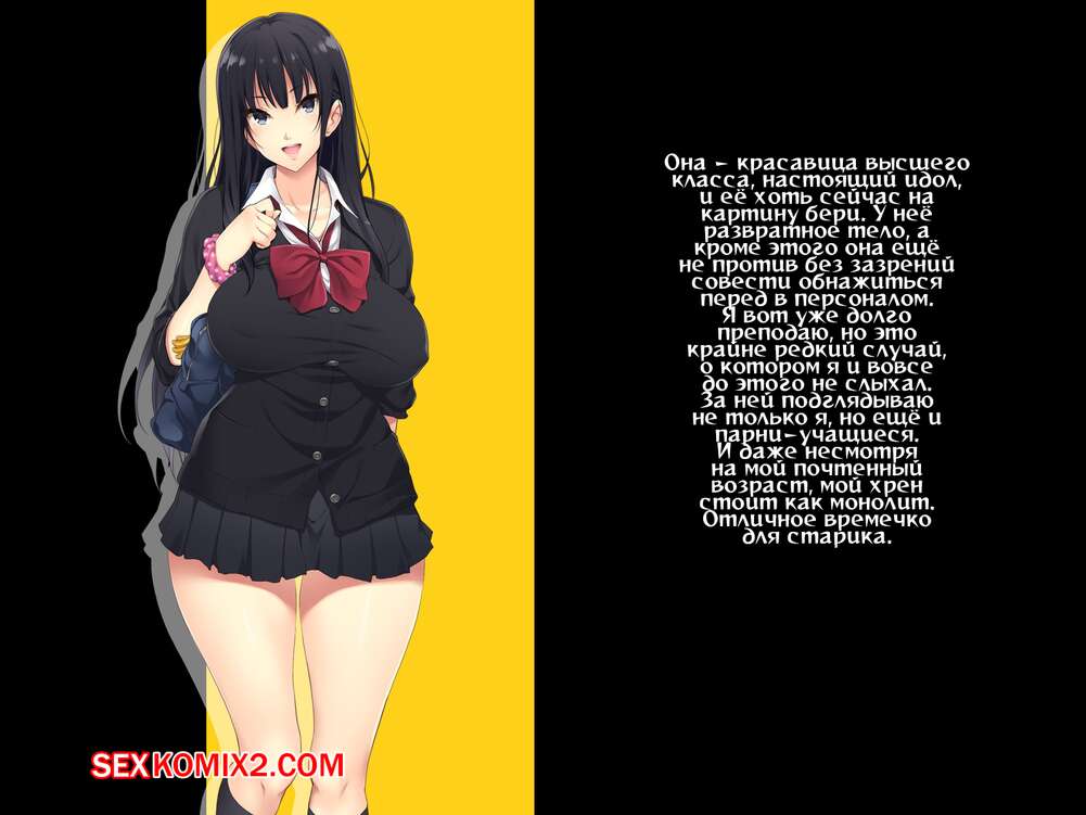 Порно комикс Старшеклассницы ебутся с мужиком. Часть 1 Сисястая школьница пришла в кабинет к пожилому директору школы и сразу же обратила внимание, что он хочет ее. Она стала его соблазнять, раздвигая ножки, а затем вовсе встала раком перед ним, показав трусики. Оба хотели друг друга, поэтому они сразу же устроили страстную еблю.