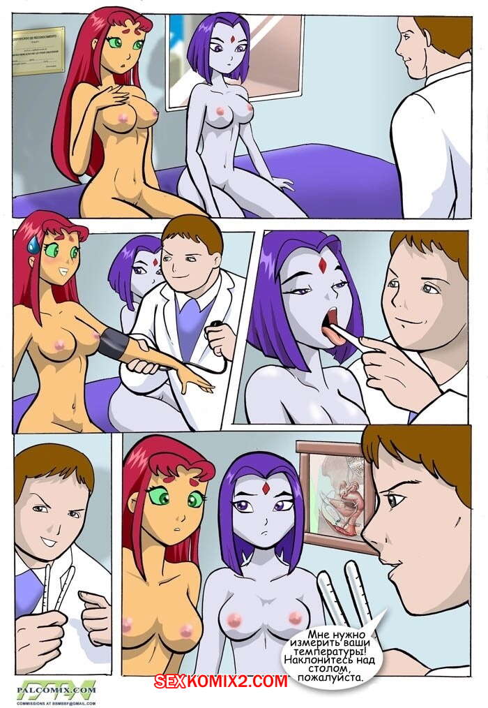 Порно комикс Teen titans. Медосмотр. Palcomix Две красотки отправились на медосмотр к молодому парню врачу. Он попросил их раздеться и стал проводить осмотр. Он говорил им что делать, а они выполняли. Так он смог разглядеть их голые тела хорошенько, а затем трахнул их попки своим пальцем, а также засунул им в пизду градусник.