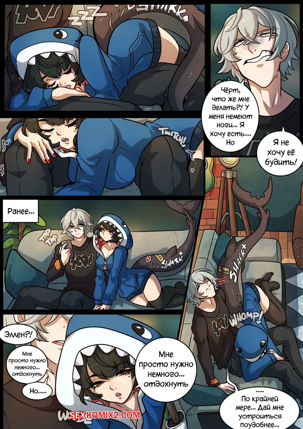 Порно комикс Zenless Zone Zero. Сигналы акул. Kinkymation Парень сильно устал и его горячая подруга решила помочь ему расслабиться. Красотка разделась и отсосала большой хуй парня, после чего дала ему себя выебать.