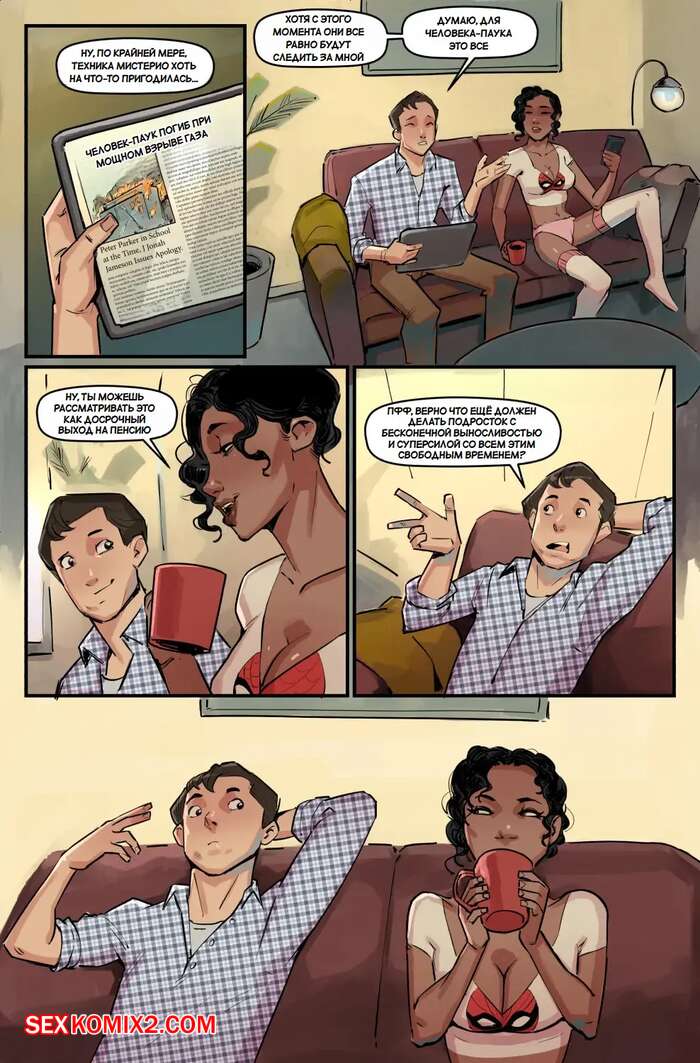 Порно комикс Человек Паук. Концовка возвращения домой. Spider Man Homecoming Ending. Disclaimer Человек Паук сильно заранее вышел на пенсию и теперь ему надо найти куда тратить свою энергию. Эм Джей решила помочь парню и разделась перед ним, после чего дала ему себя выебать во все дырочки.