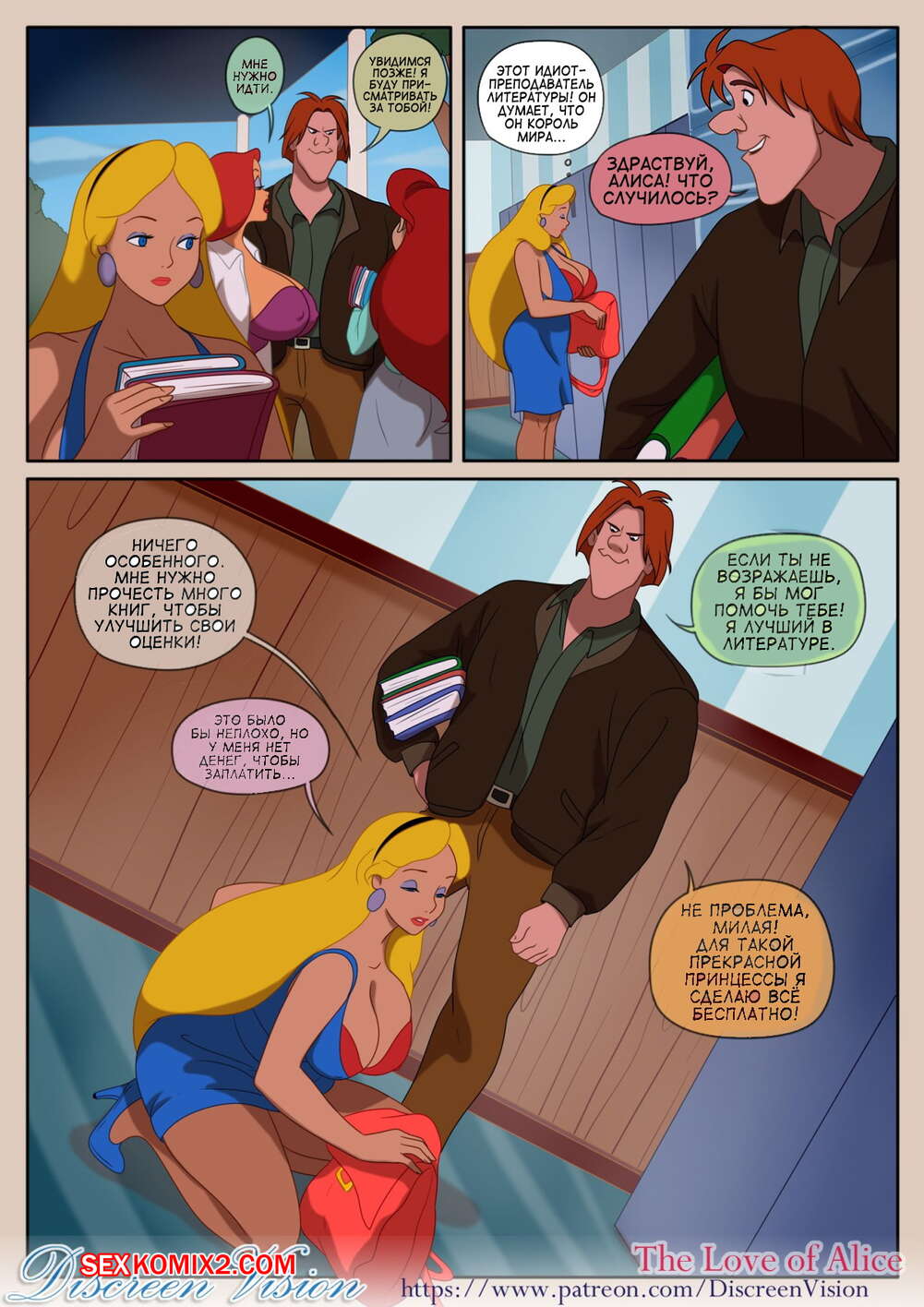 Порно комикс Влюбленность Алисы. Alice in Wonderland. Inusen. Блондинка с пышной грудью встретила парня в университете, он ей очень сильно понравился и девушку согласилась пойти с ним на свидание.