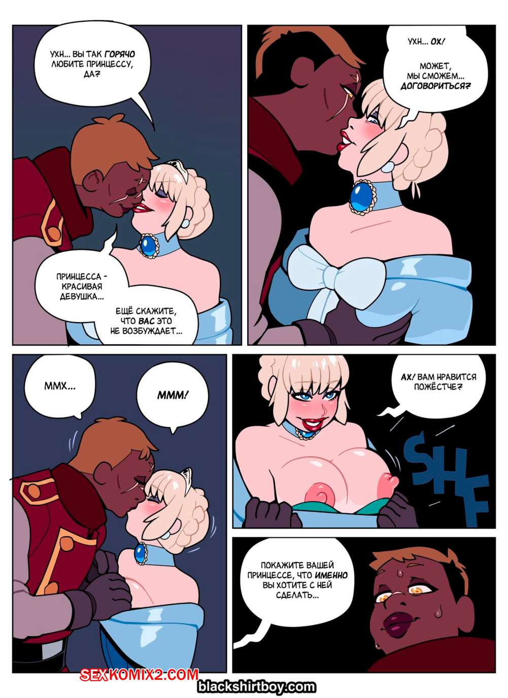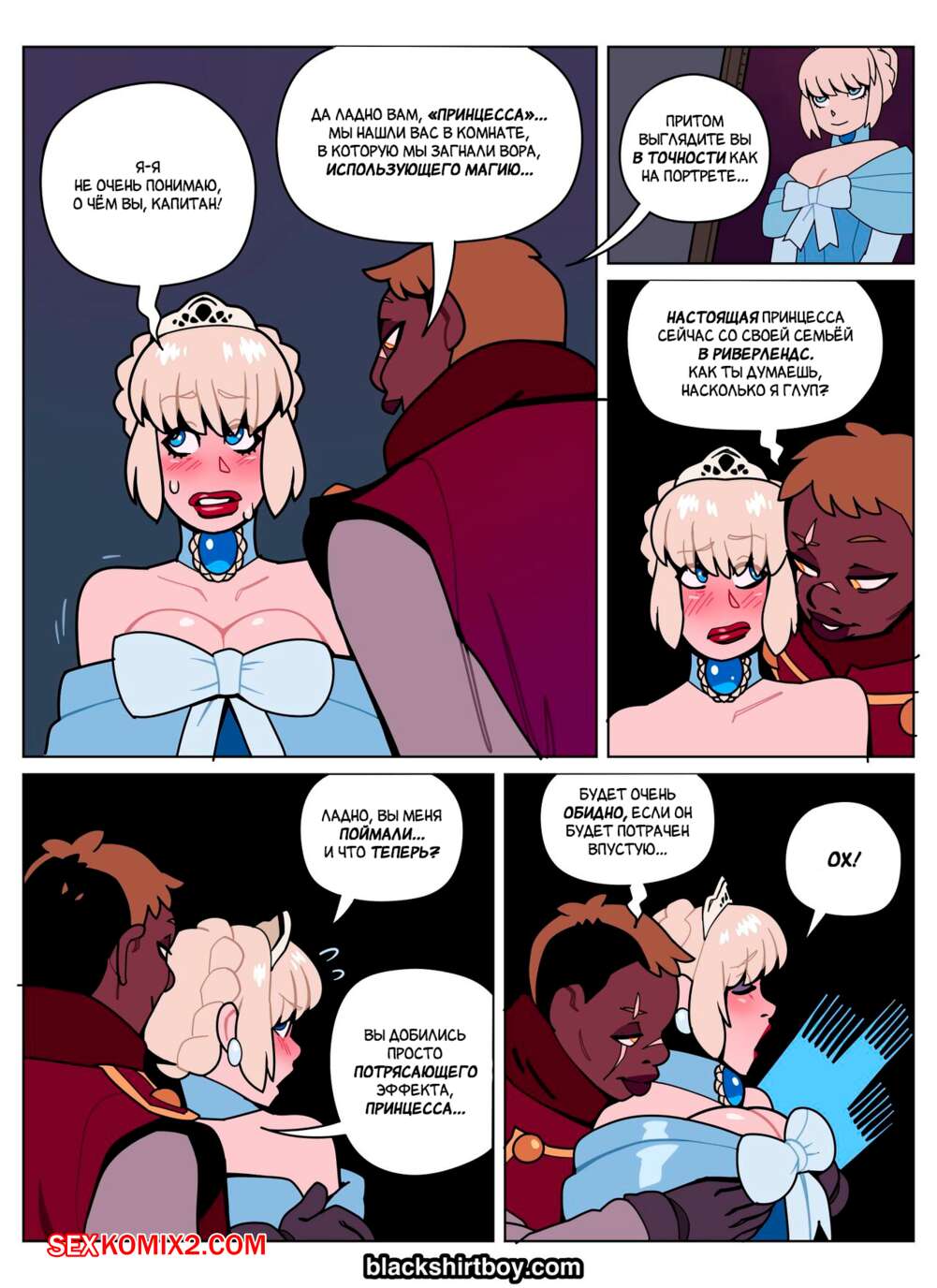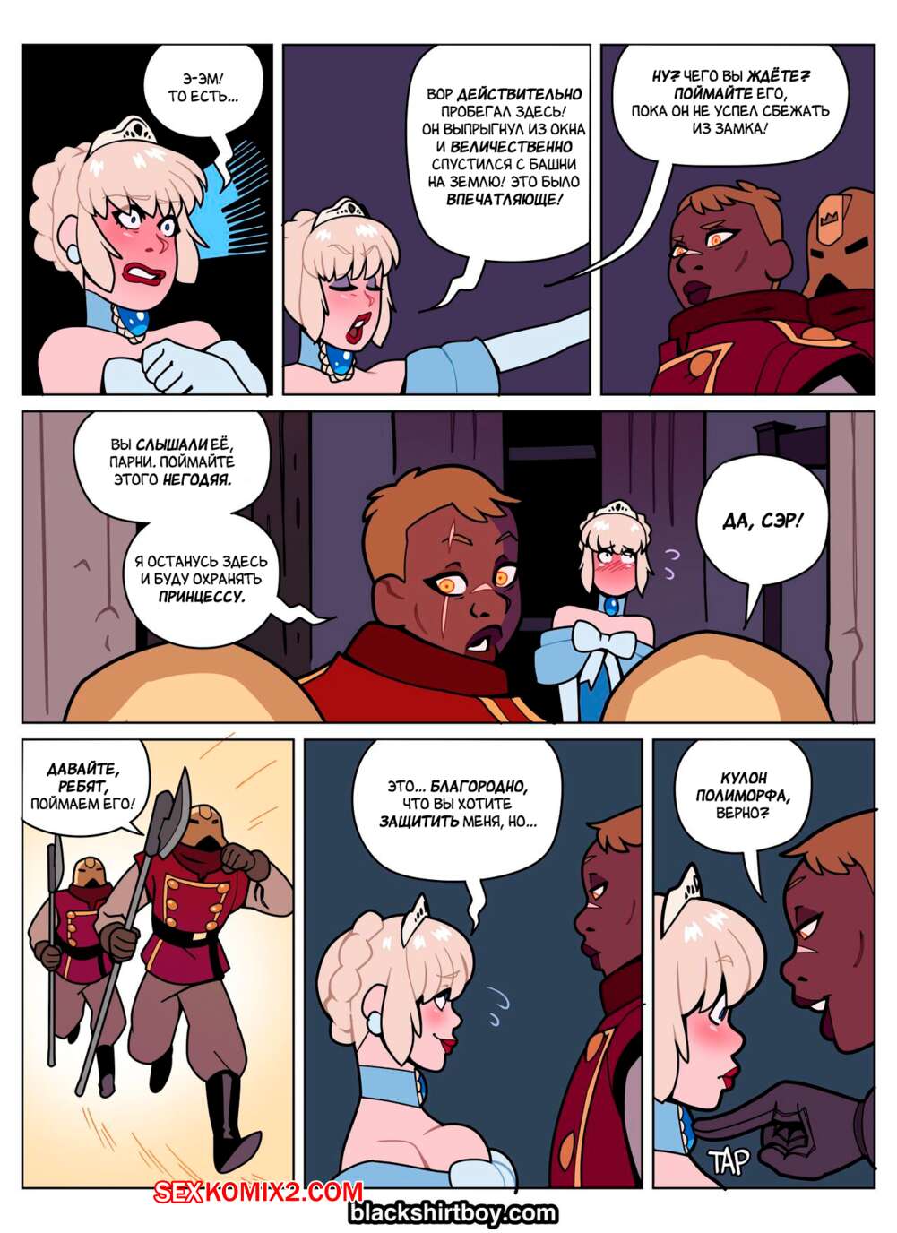 Порно комикс За Гранью. Вор. Beyond. The Thief. BlackShirtBoy Вор ворвался в замок, но с ним чтото произошло и он превратился в сексуальную принцессу. Девушка стала сосать хуй темнокожей охранницы, после чего дала ей себя выебать.