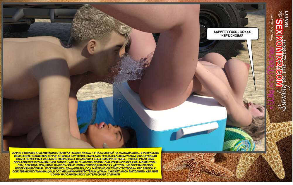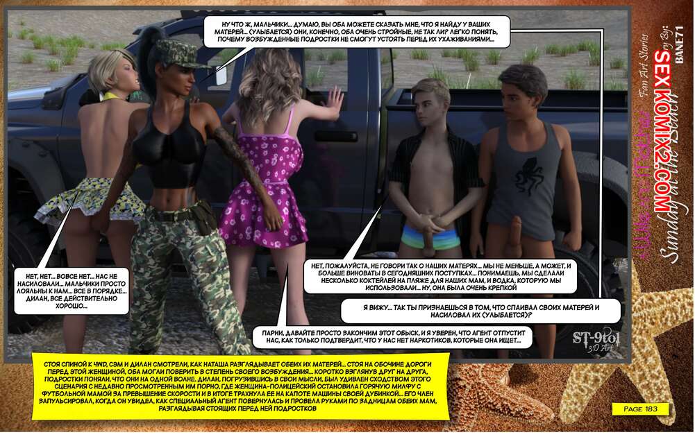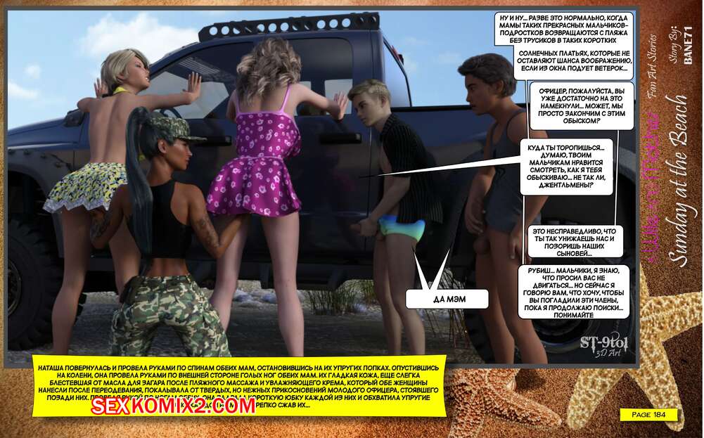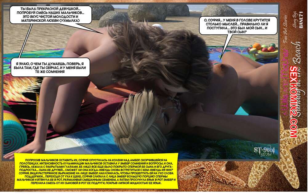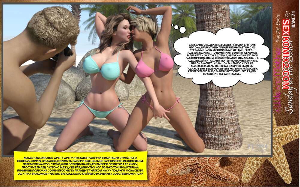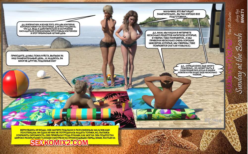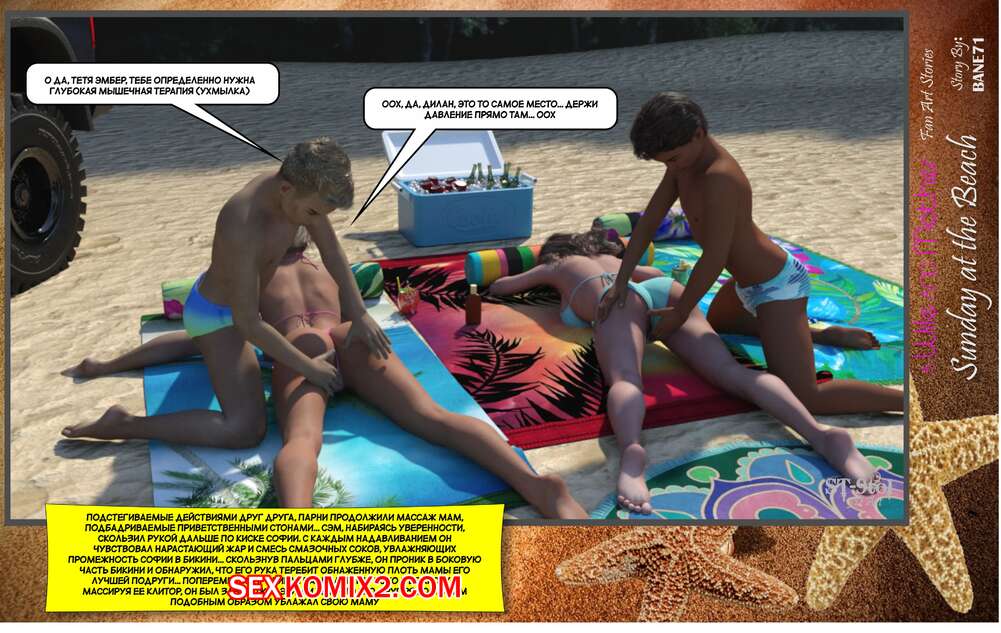Порно комикс Воскресный день на пляже. Sunday On The Beach. ST9to1 Горячие милфы отправились на пляж с молодыми парнями. Там красотки соблазнили ребят своими шикарными телами, после чего раздвинули ножки и дали им себя хорошенько выебать.