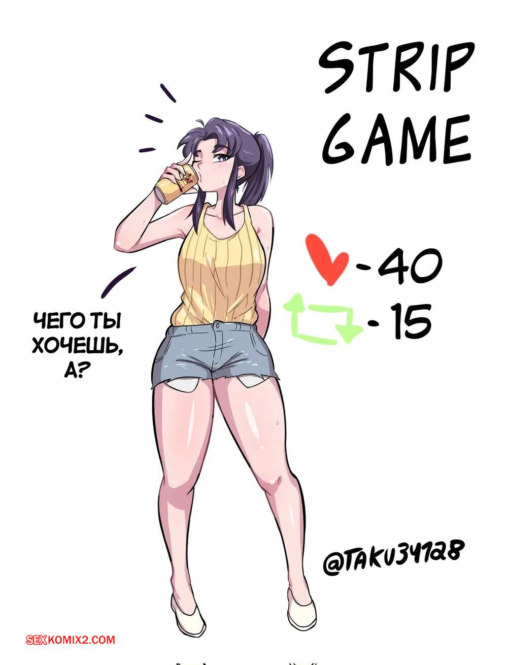 Порно комикс Игра в раздевание Мисато Катсураги. Misato Katsuragi Strip Game. taku34128. Горячая брюнетка принимает участие в игре в раздевание. Зрители ставят девушке лайки, а она демонстрирует во всей красе свои прелести, после чего дает парню выебать свою задницу.