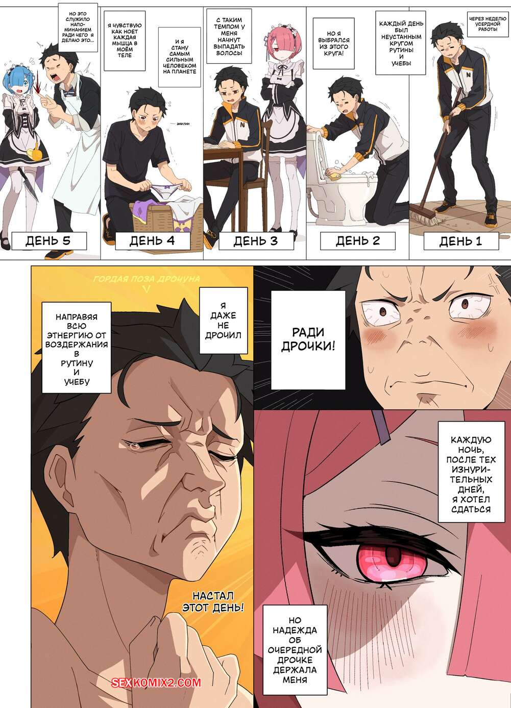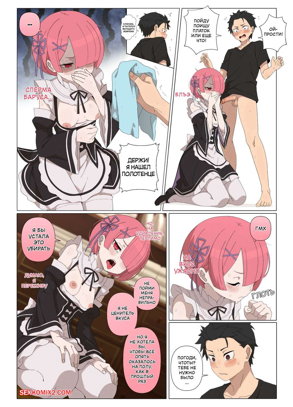 Порно комикс Проникая в Рам. Часть 2. Ramming Ram. Fenqury Горячая горничная соблазнила мастера своим шикарным телом и возбудила его. Она встала на колени и стала дрочить хуй парня, доставляя ему невероятное удовольствие.