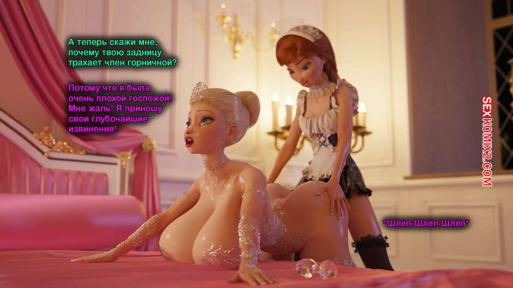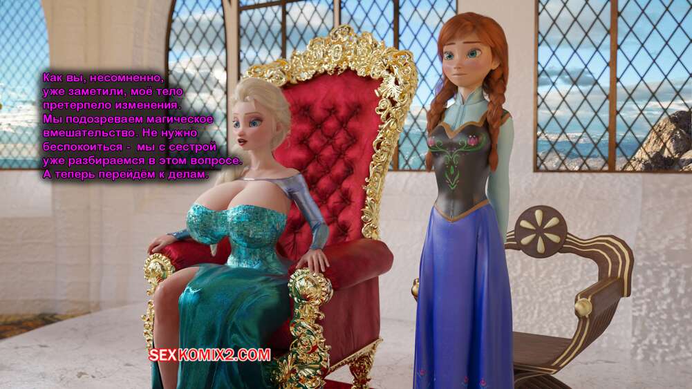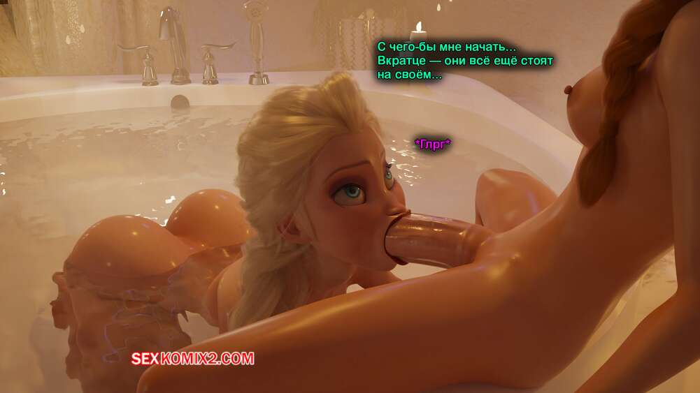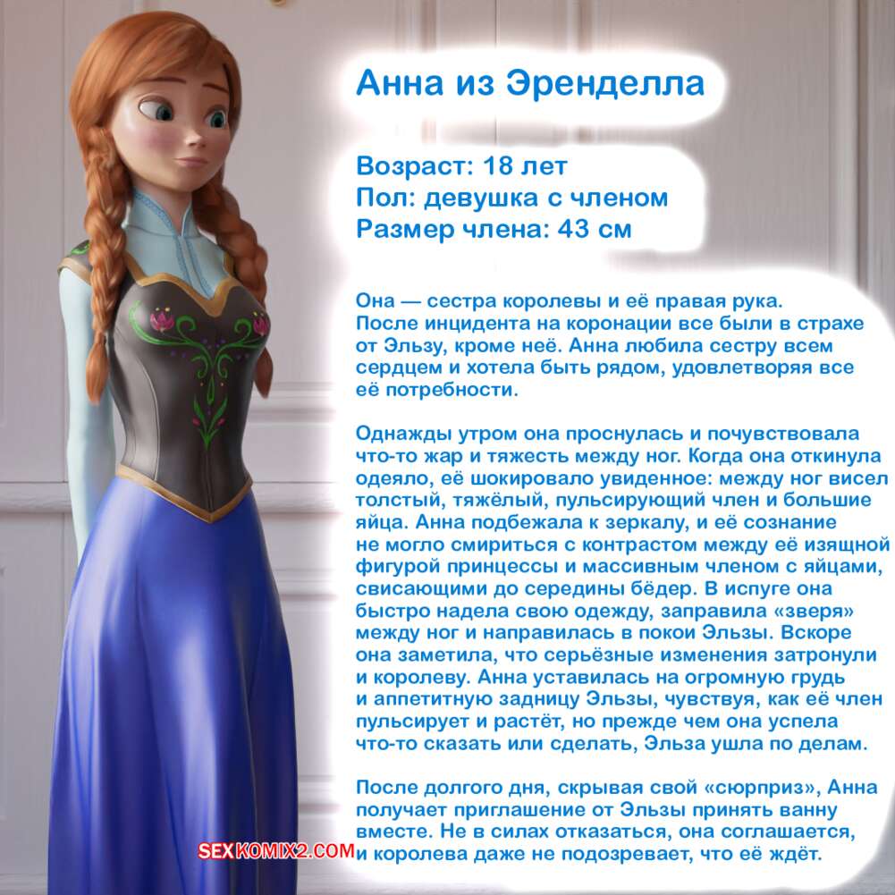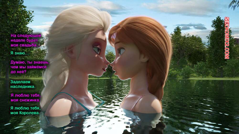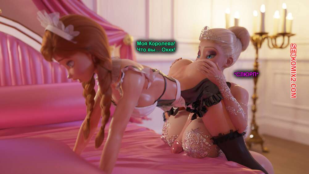 Порно комикс Frozen. Тающая Королева. Melting Queen. Serge3Dx У Анны появился член, который не дает Эльзе покоя. Она раздевается и сосет большой хуй брюнеточки, после чего раздвигает ножки и дает себя хорошенько выебать, от чего две красотки получают оргазмы.