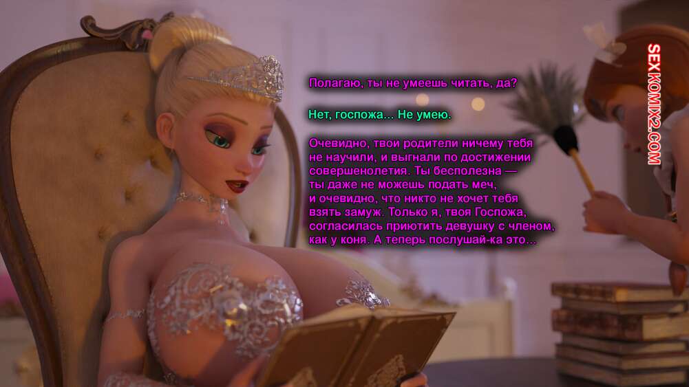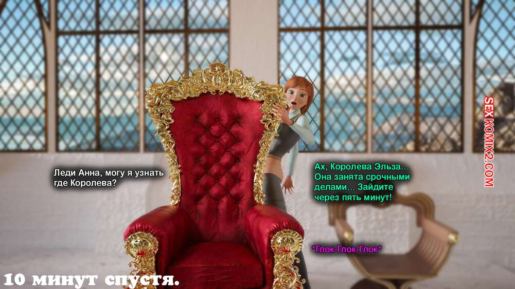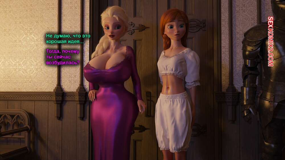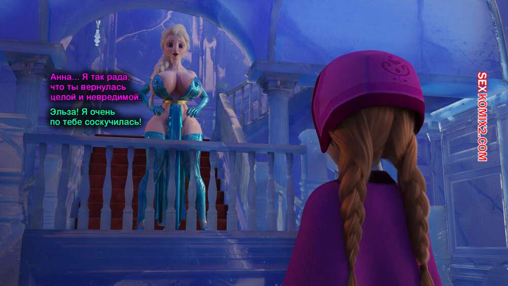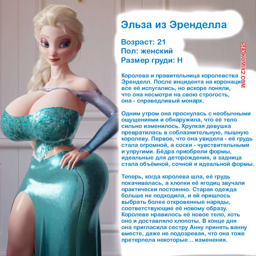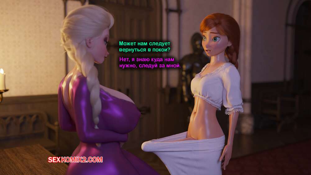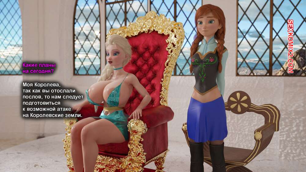 Порно комикс Frozen. Тающая Королева. Melting Queen. Serge3Dx У Анны появился член, который не дает Эльзе покоя. Она раздевается и сосет большой хуй брюнеточки, после чего раздвигает ножки и дает себя хорошенько выебать, от чего две красотки получают оргазмы.