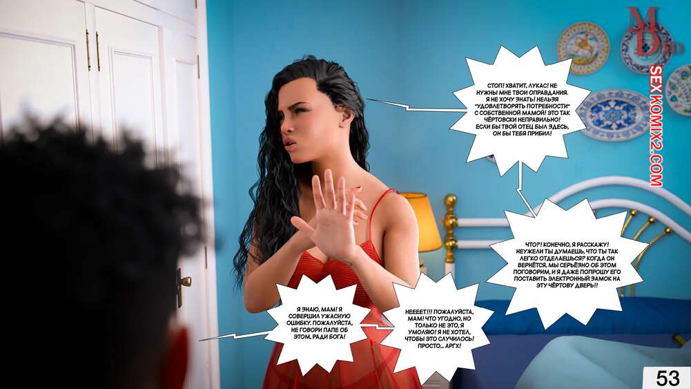 Порно комикс Запретная любовь. Часть 1. Forbidden Love. MagicDragon3D. Горячая милфа не получает любви и заботы от мужа, у них давно не было секса. Когда муж уехал на работу, красотка стала трахать себя с помощью дилдо, но ее за этим делом спалил сын.