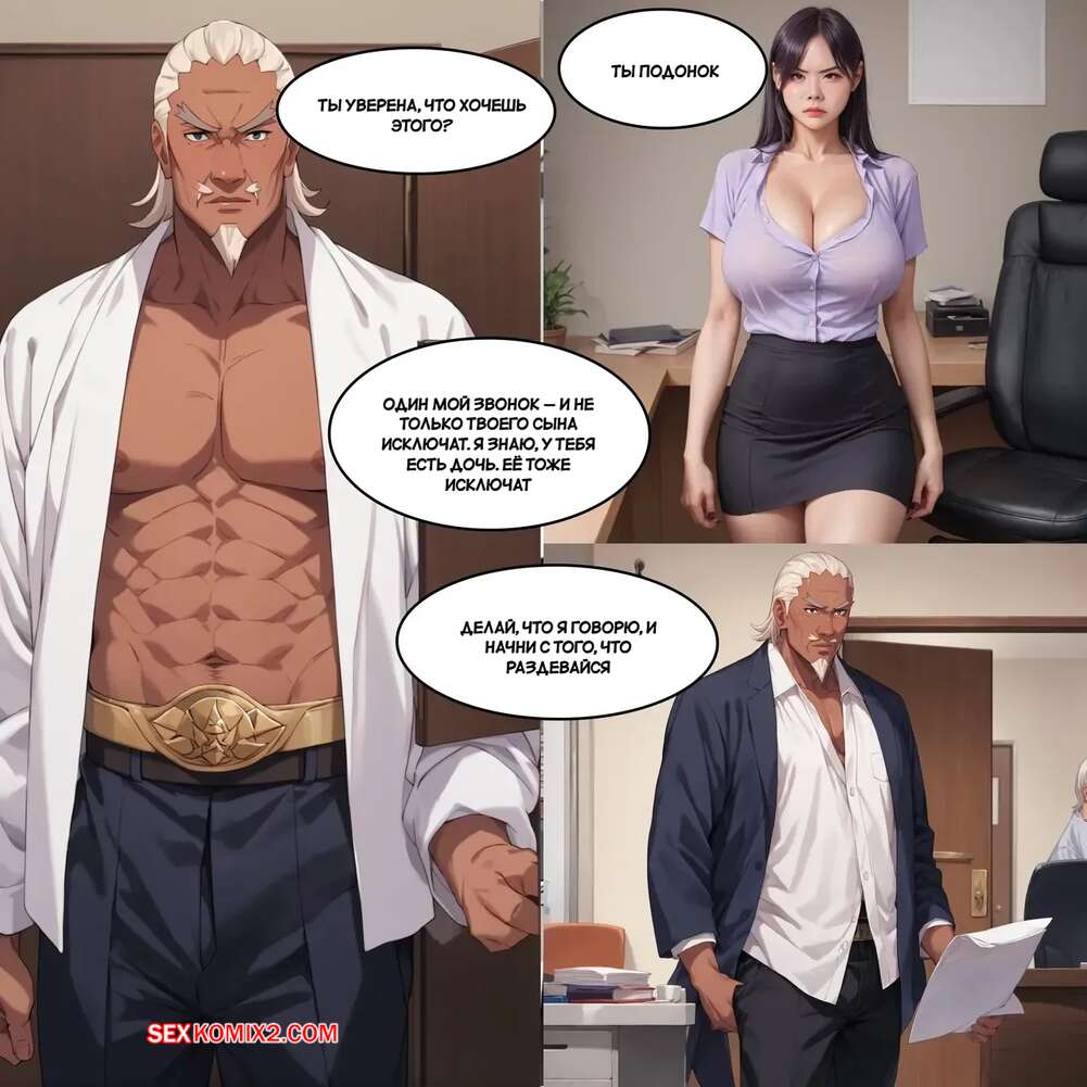 Порно комикс Школа матери Хабина. School Mother Habin Райкаге Сама вызвал к себе в кабинет горячую мамку своего ученика, желая соблазнить ее. Зрелая красотка разделась и отсосала хуй директора школы, после чего дала ему себя выебать и кончить в нее.