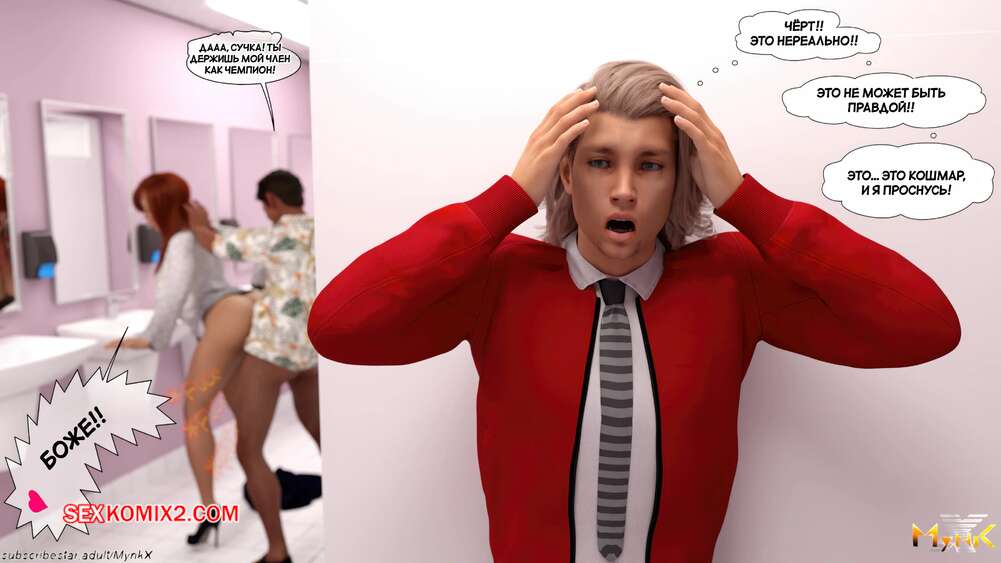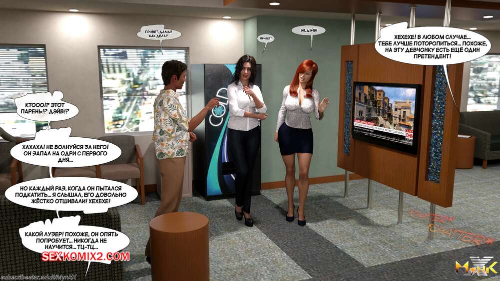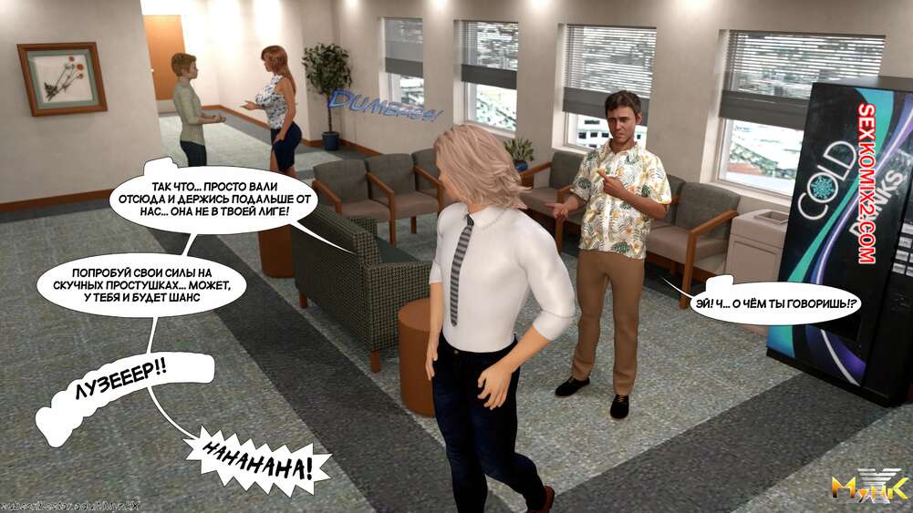 Порно комикс Победитель и лузер. Winners and Losers. Mynkx. Рыжая красотка работает в офисе, где на нее дрочат почти все парни. Вечером один из парней зашел в туалет и обнаружил, как девушку трахает пацан из офиса, которого он всегда считал лузером.