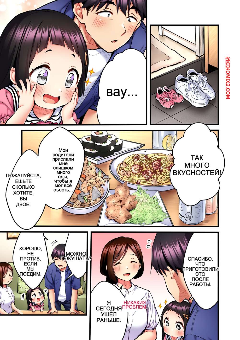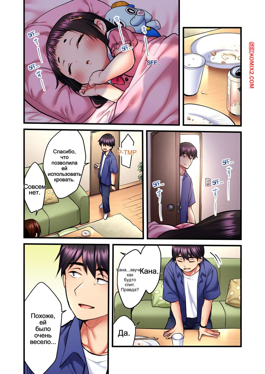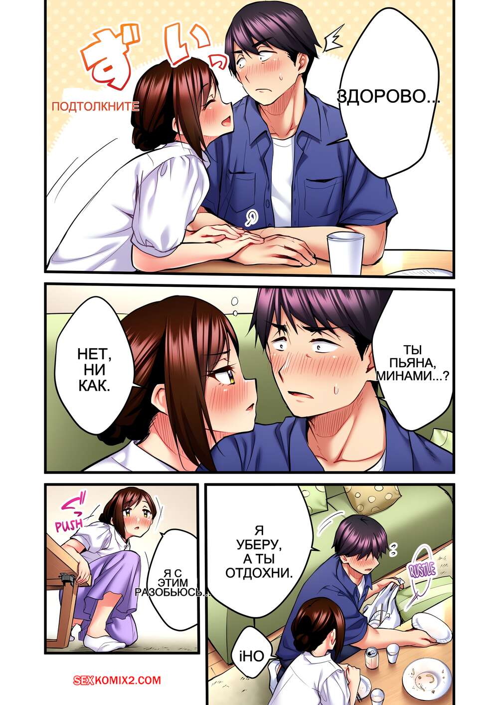 Порно комикс Невинная телепевица. Без цензуры. Часть 25 и 26 и 27 Красотка уложила ребенка спать, после чего вышла в гостинную к парню, желая пошалить. Она стала его целовать и дала пососать свои сиськи, после чего оседлала хуец парня и дала себя выебать.