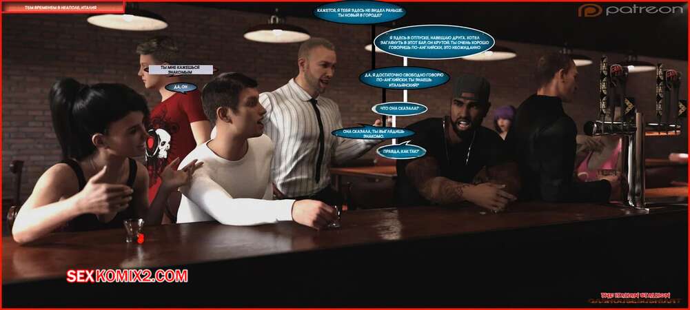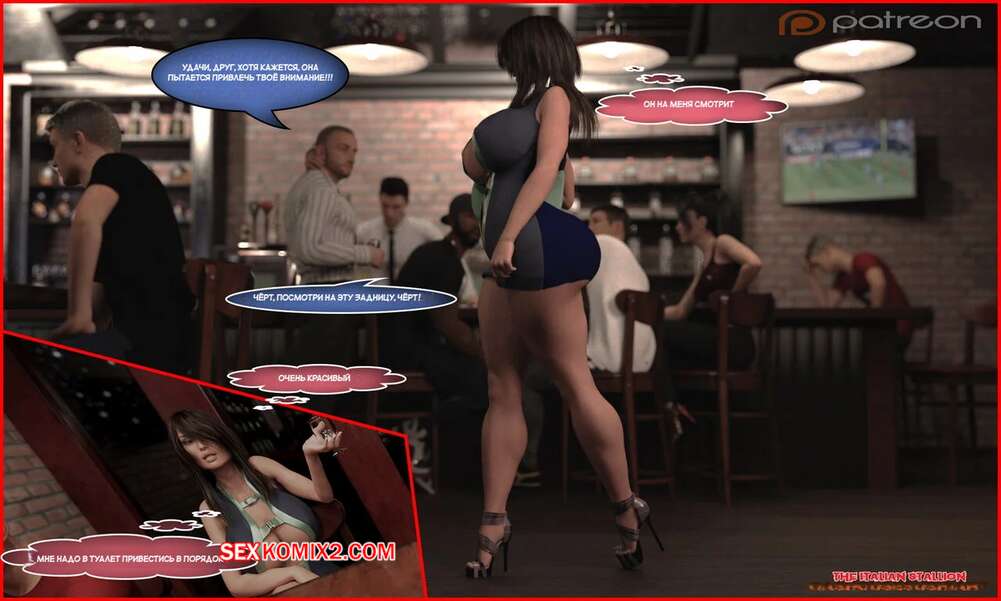 Порно комикс Итальянский жеребец. Italian Stallion. GashouseSushiArt. Горячая милфа зашла в бар и быстро собрала на себе взгляды всех парней. Красотка схватила за руку темнокожего парня и отвела его в сторону, после чего стала тереться задницей о его член.