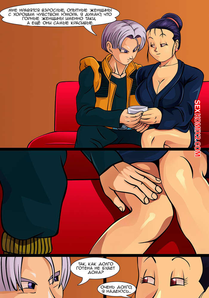 Порно комикс Dragon Ball. Огненная гора блаженства Горячая милфа встретила молодого парня, который пришел к ее сыну. Она пригласила его в дом и парень стал к ней приставать. Сучка не смогла устоять перед его напором и дала ему отлизать свою пизденку, после чего отсосала его большой хуй и дала себя выебать.