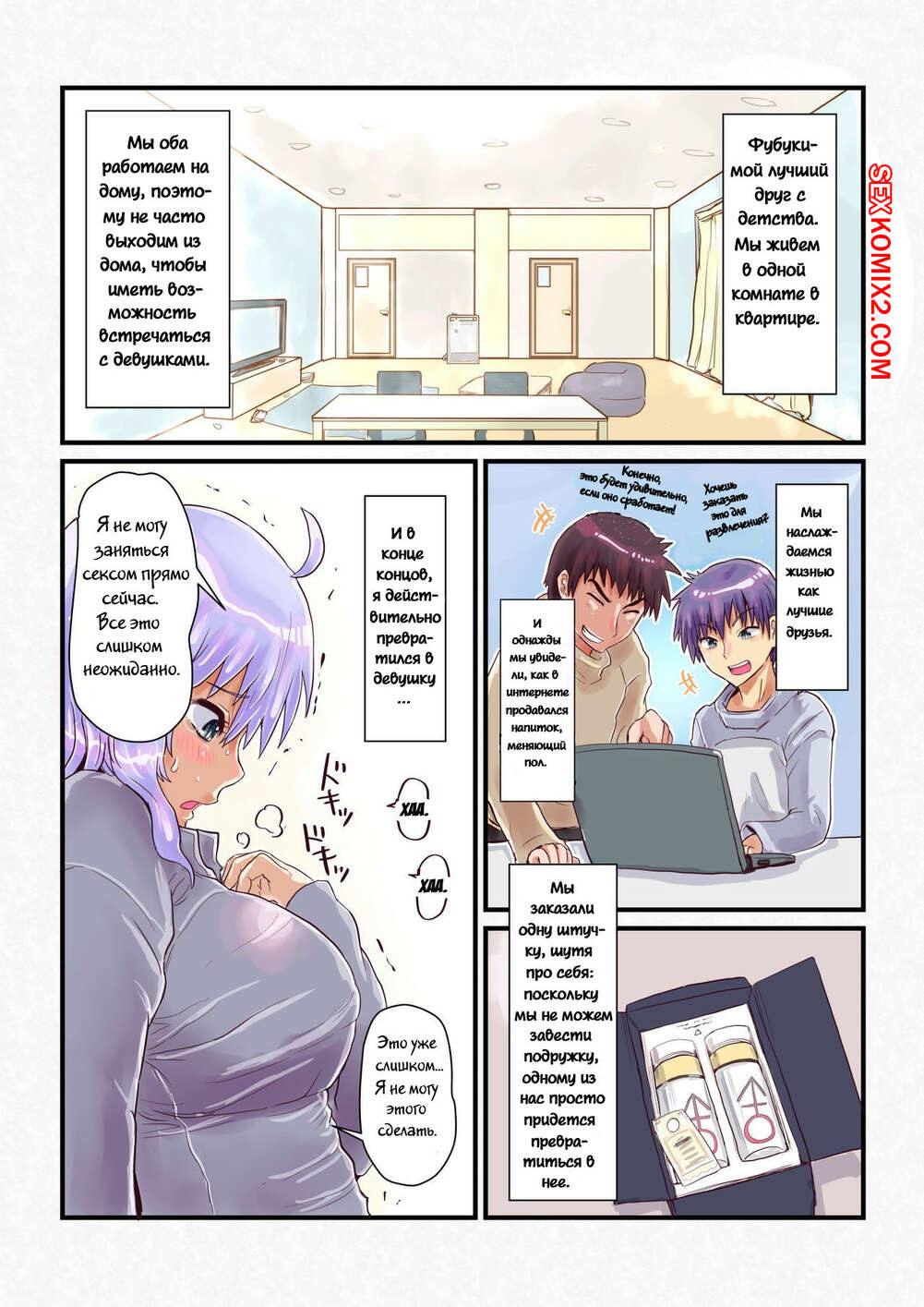 Порно комикс Напиток, меняющий пол. Nyotaika Shitara Osananajimi