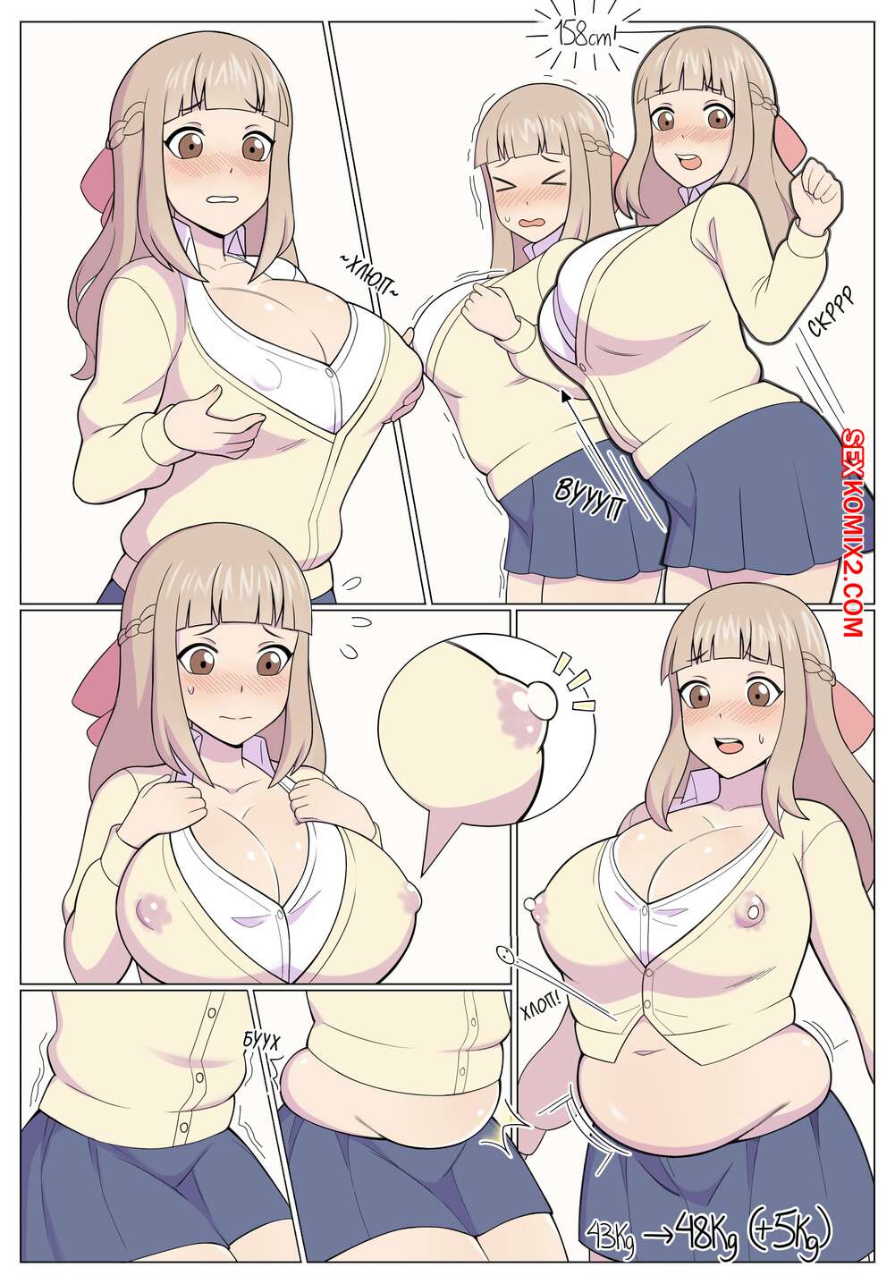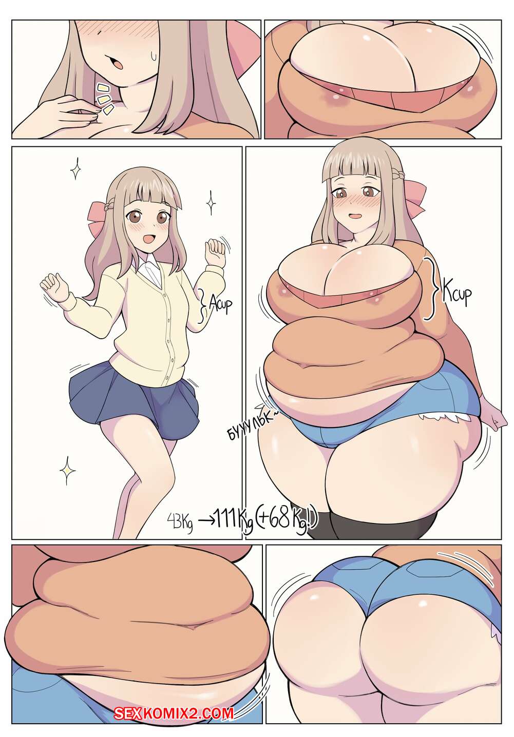 Порно комикс Большие амбиции. Belka dog Горячая красотка блондинка выпила таблетку, изза которой у нее стали увеличиваться сиськи и она стала полнеть. Ее дружок возбудился и решил ее хорошенько выебать.